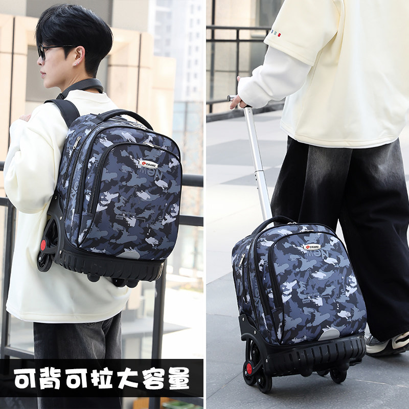 拉杆式书包中学生大容量专用一体式拉杆箱高中生初中学生拉杆书包