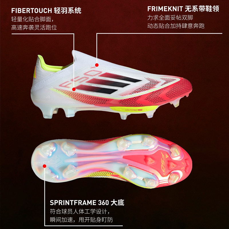 酷锐足球阿迪达斯F50+ FG超高端长钉真草无鞋带足球鞋男IE1251