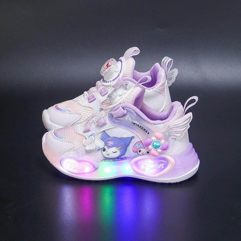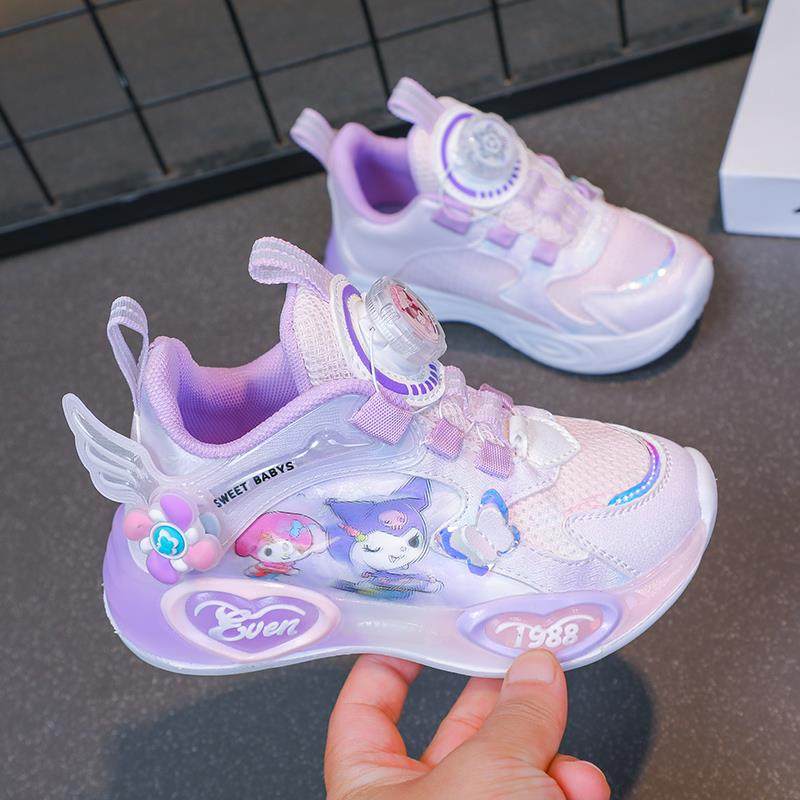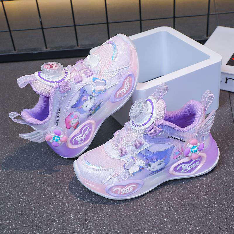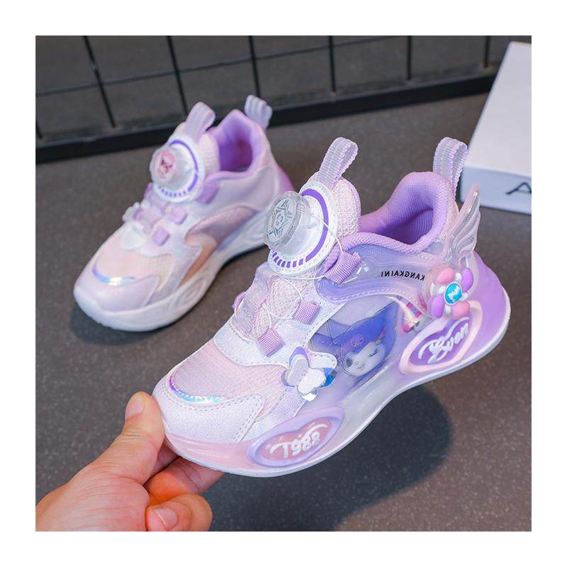 库洛米渐变网面透气女童鞋子运动鞋女孩公主鞋旋转纽扣儿童发光鞋