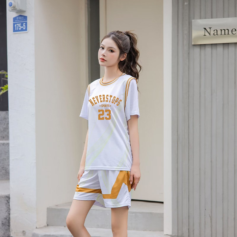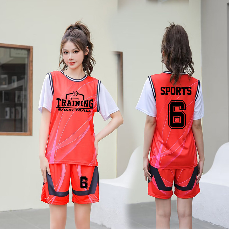 篮球服套装初中学生球衣女生2026新款假两件外穿短袖衣服定制班服