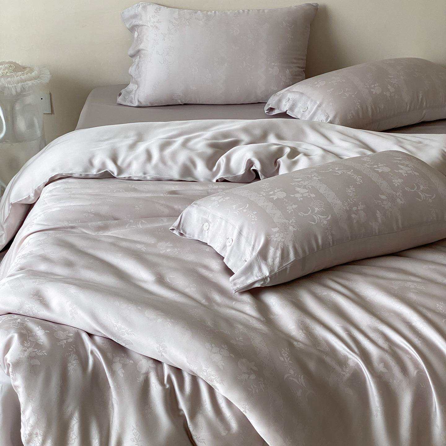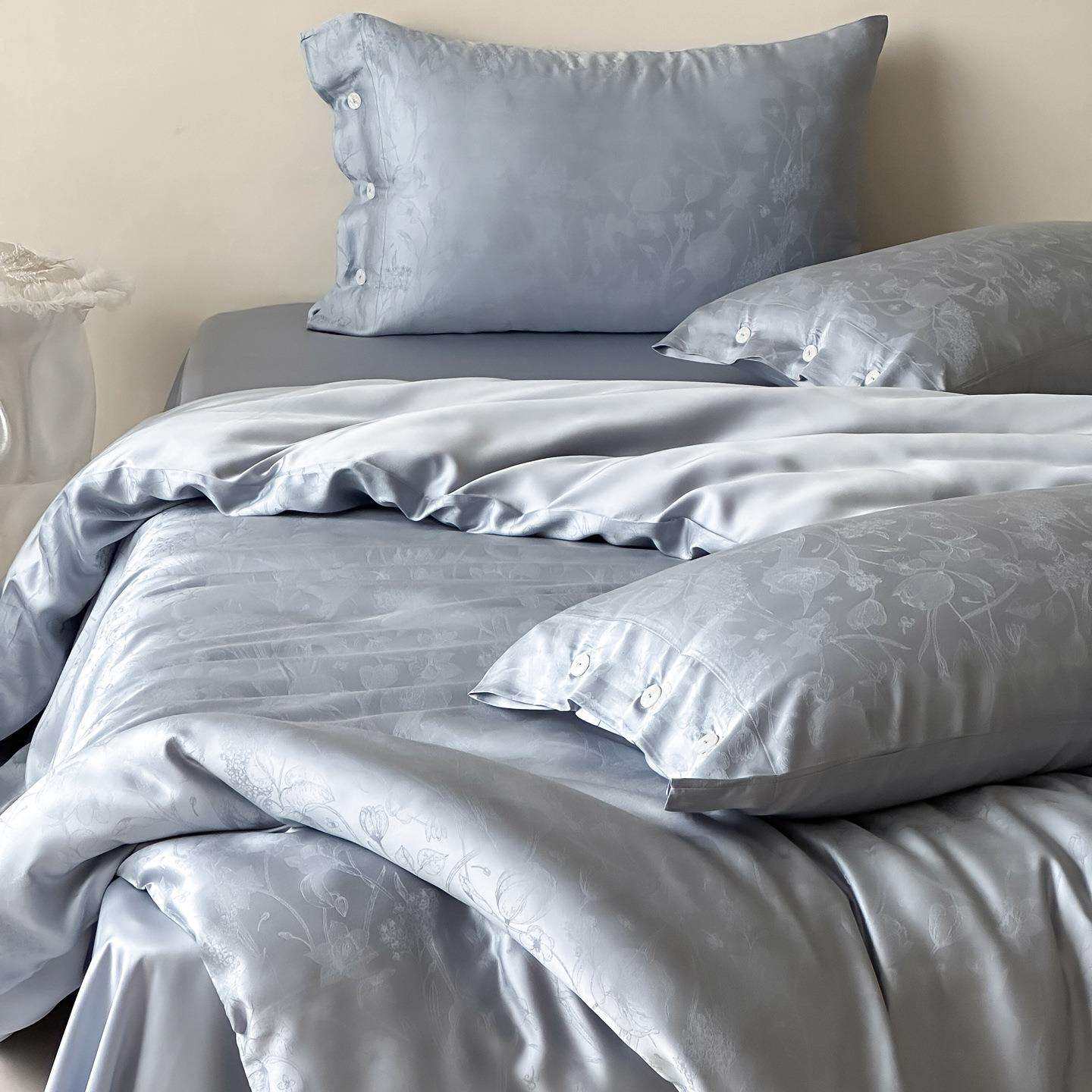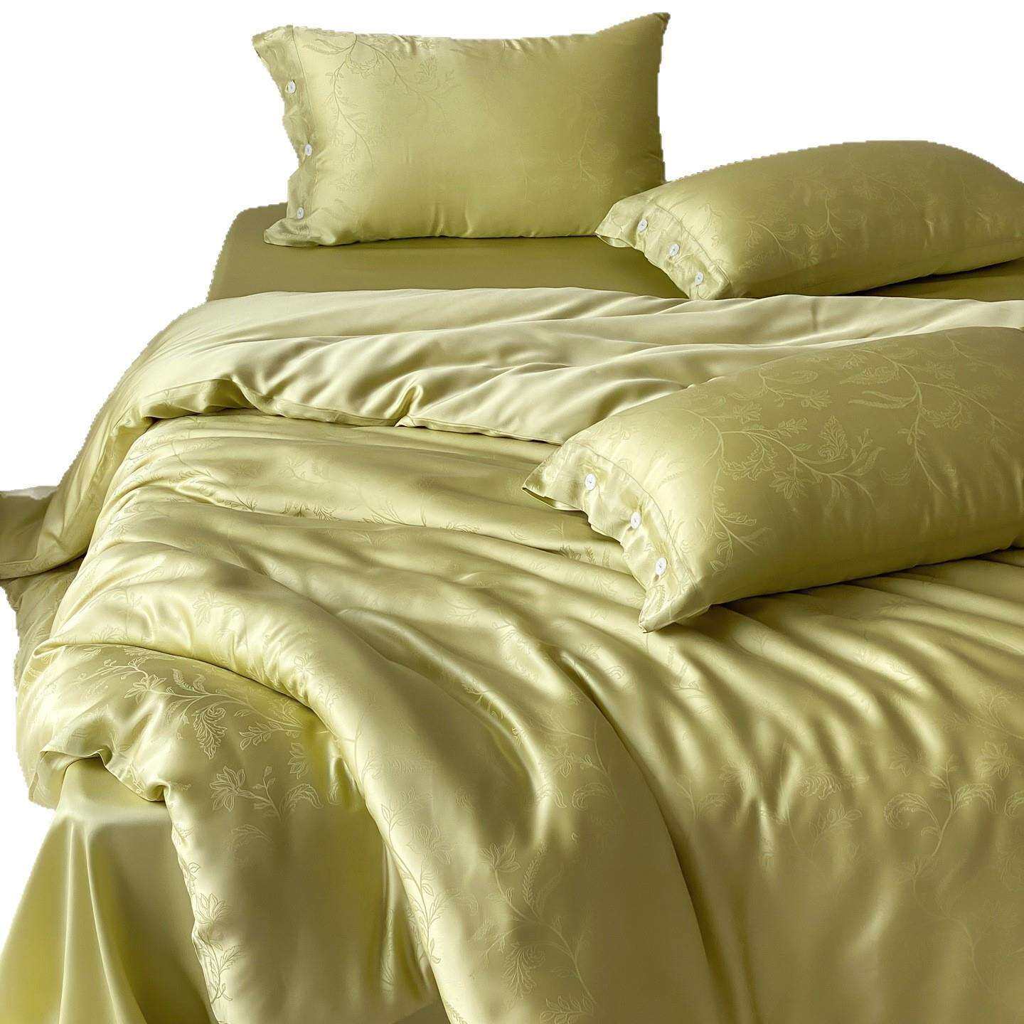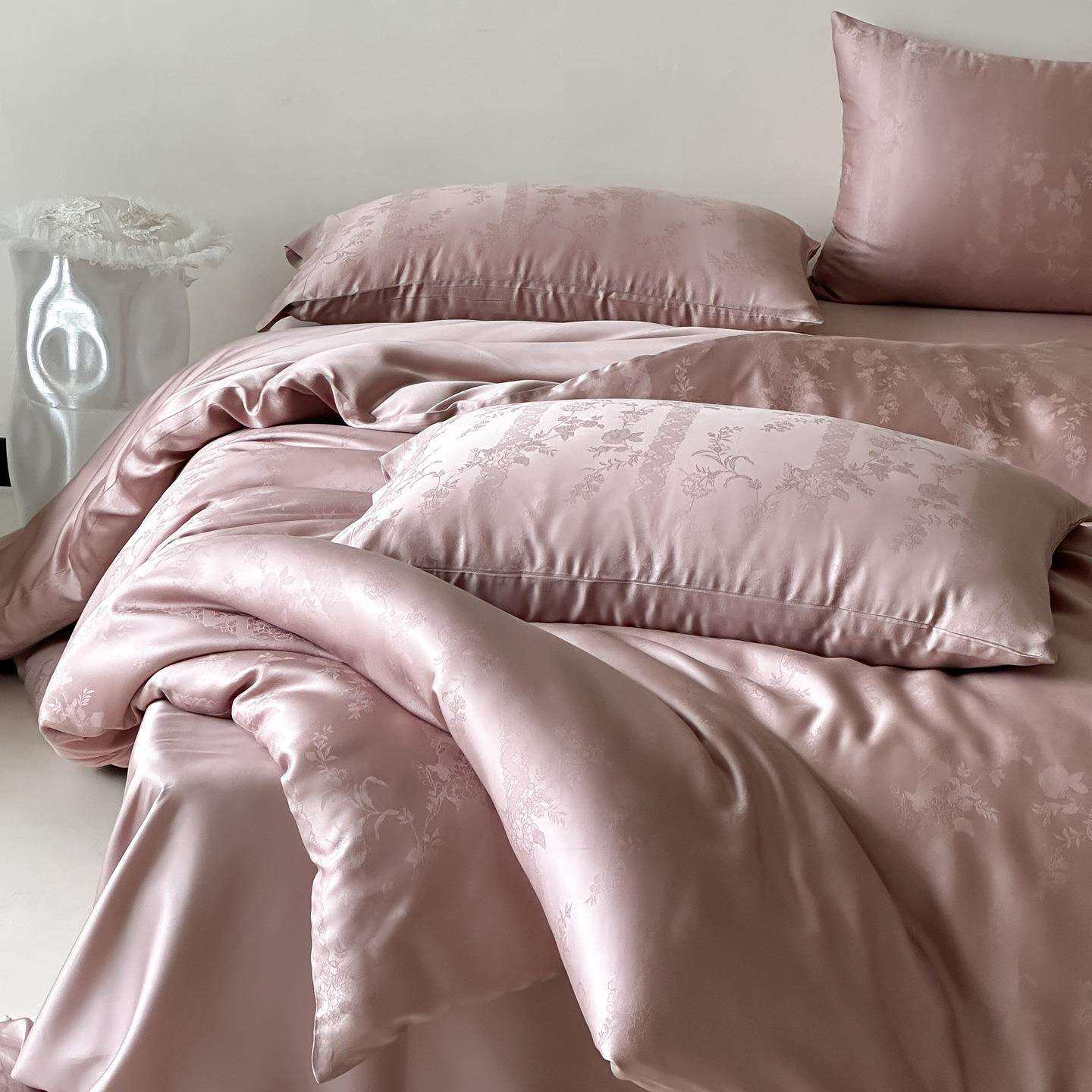 夏季轻奢风透气凉感天丝四件套高端提花冰丝裸睡被套床上用品黑色