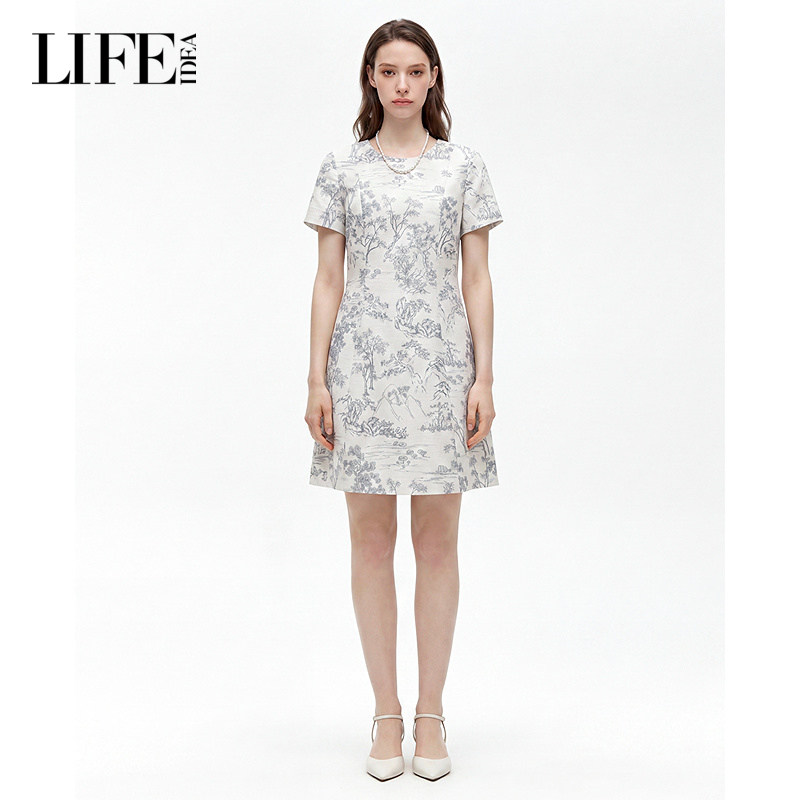 莱芙·艾迪儿新中式山水连衣裙女夏季国风印花收腰显瘦短款A字裙