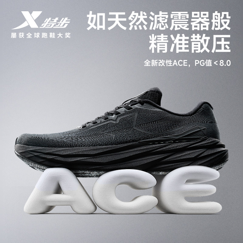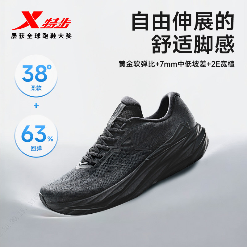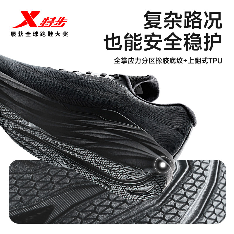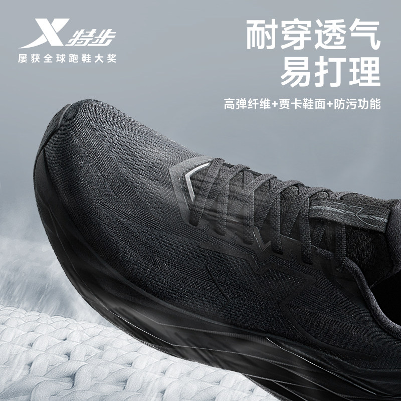 特步零压堡垒丨减震跑步鞋男鞋黑色冬季新款鞋子网面运动鞋跑鞋男