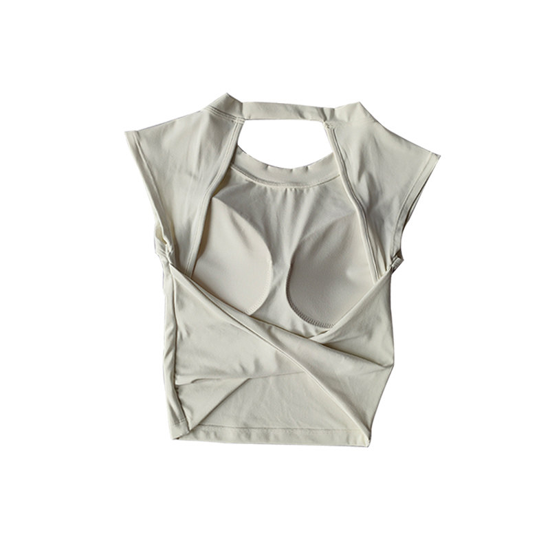 春夏性感短款露背固定胸垫运动T恤背心女紧身速干显瘦瑜伽服上衣