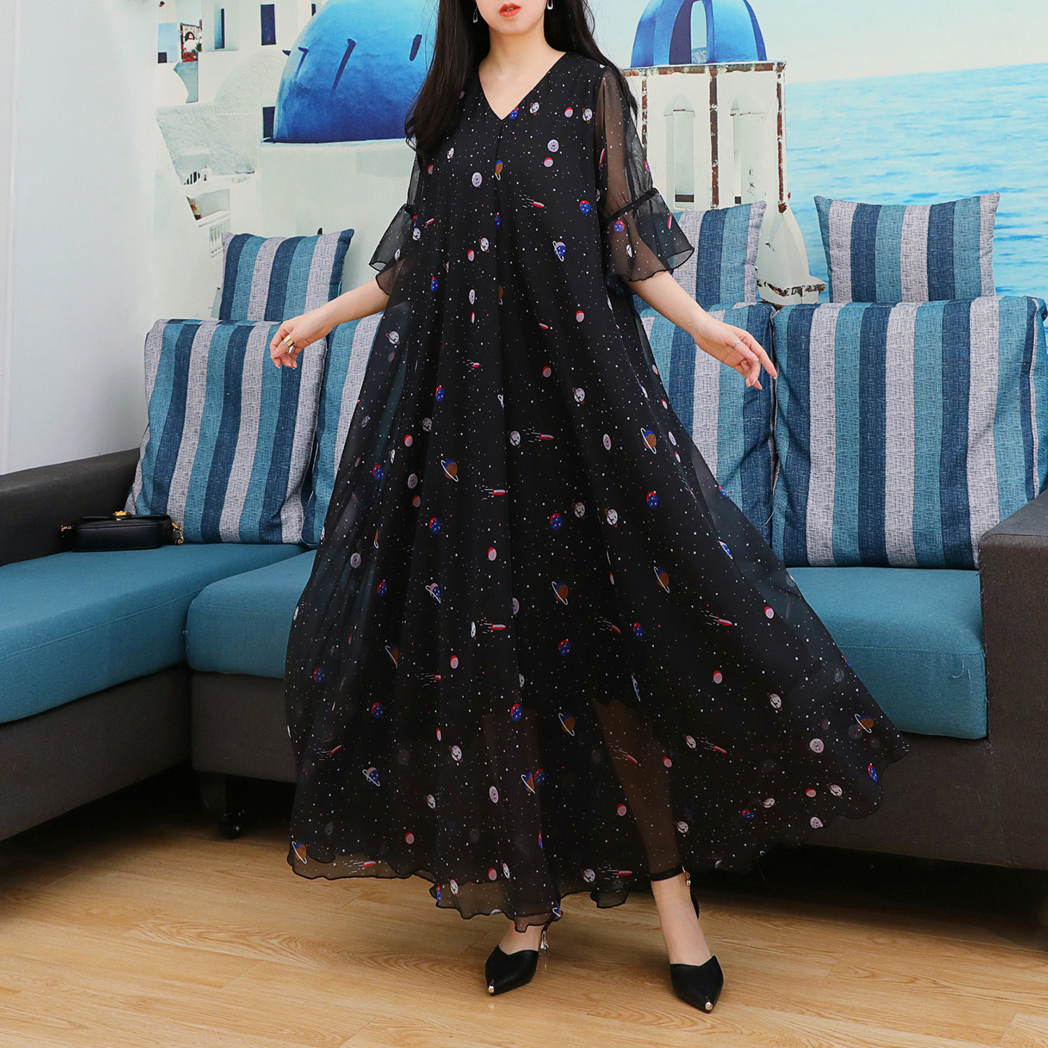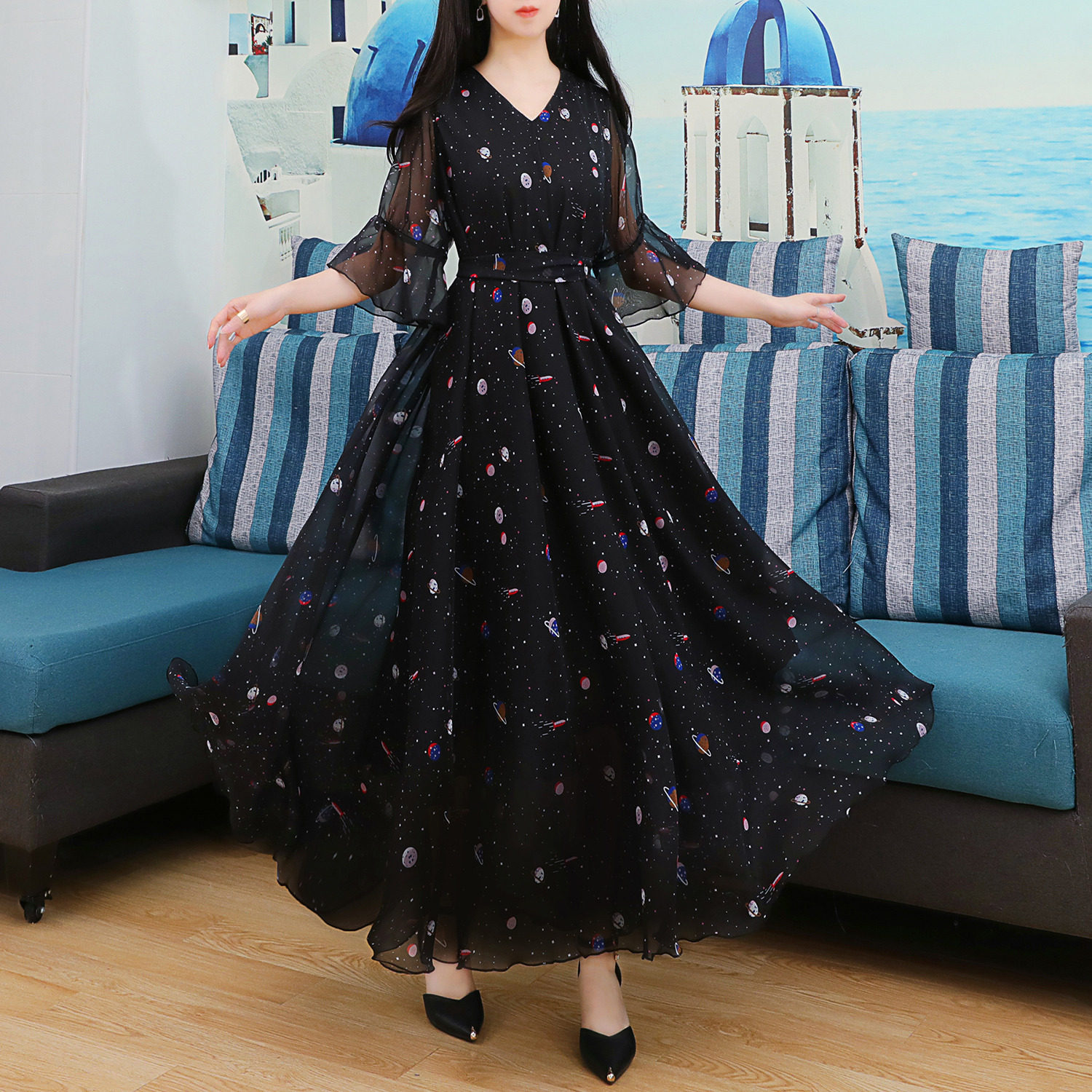 新款裙子夏季女黑色连衣裙法式气质显瘦微胖轻奢高级感长裙度假仙