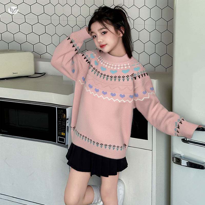 官网正品女童2025秋冬新款提花加绒加厚毛衣女大童可内搭外穿保暖