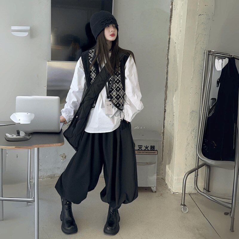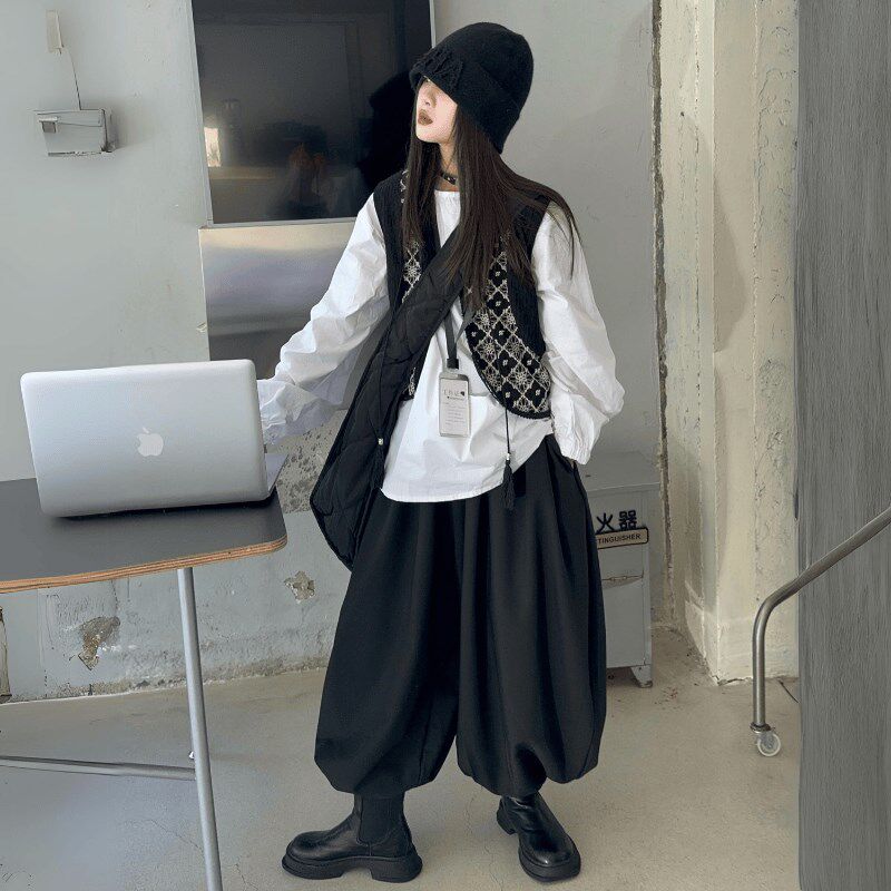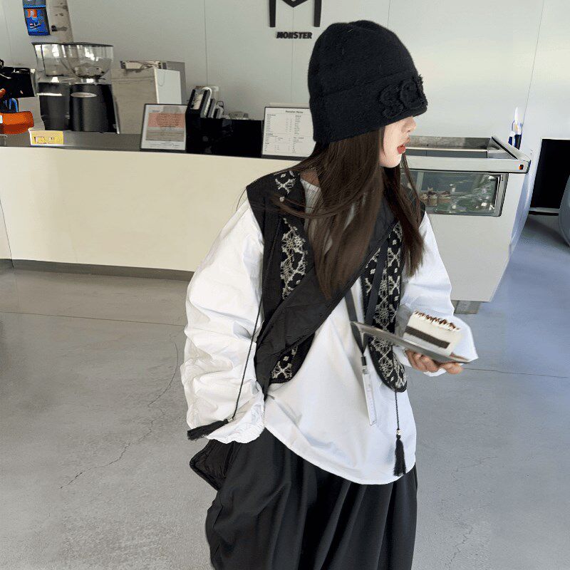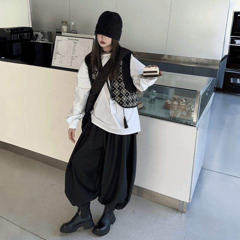 女童复古黑色针织马甲背心女秋季外搭叠穿坎肩无袖毛衣开衫小外套