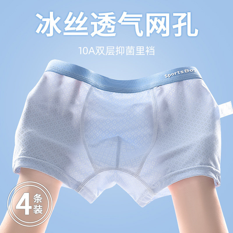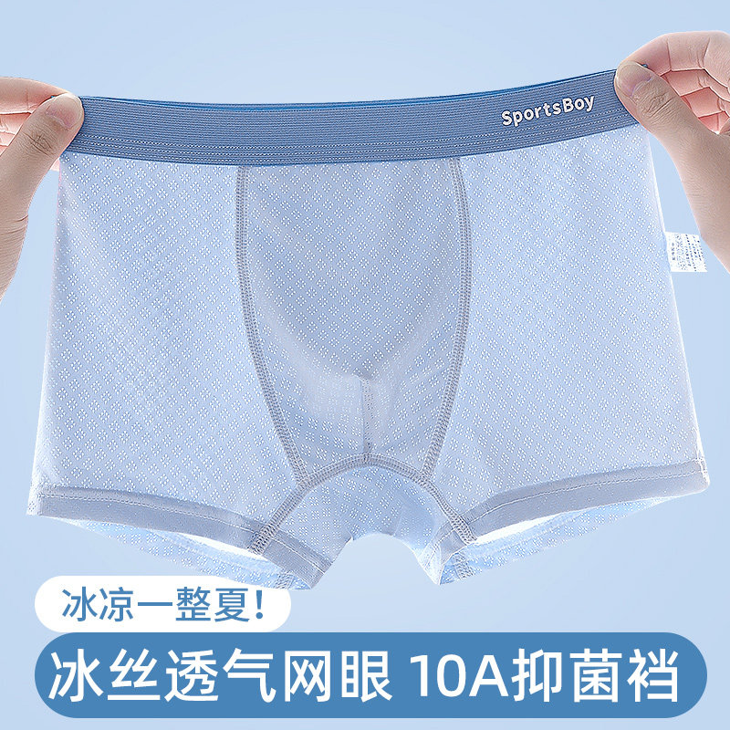 儿童A类内裤男童10A抗菌冰丝内裤男孩内裤透气网孔夏季薄款平角裤