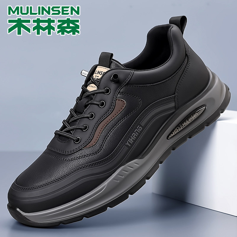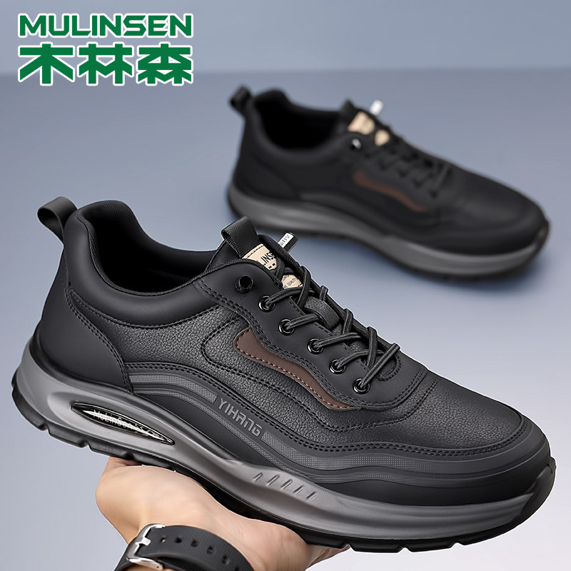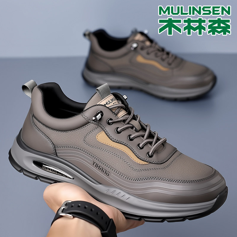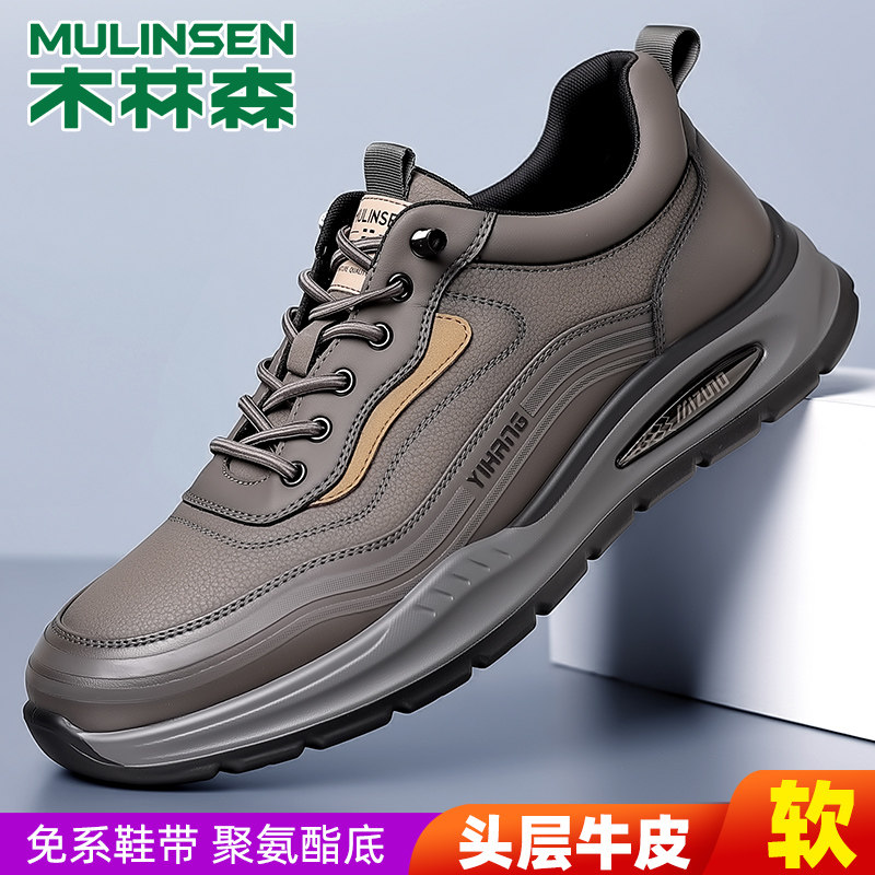 木林森男鞋2026新款真皮春季时尚休闲皮鞋男士防水软底旅游运动鞋