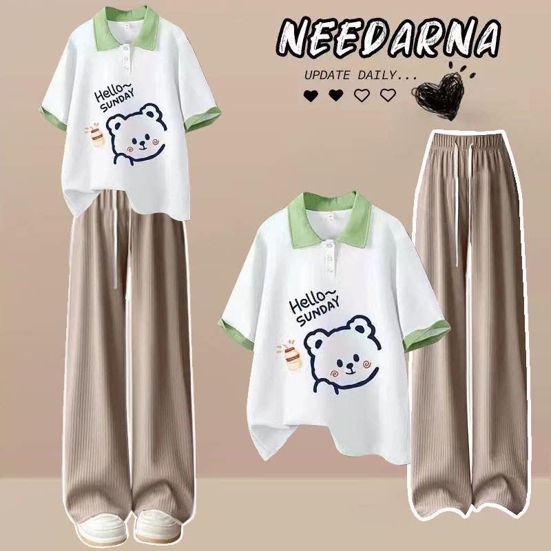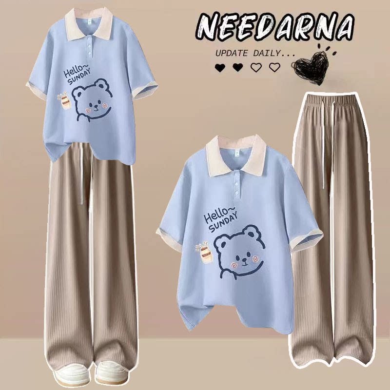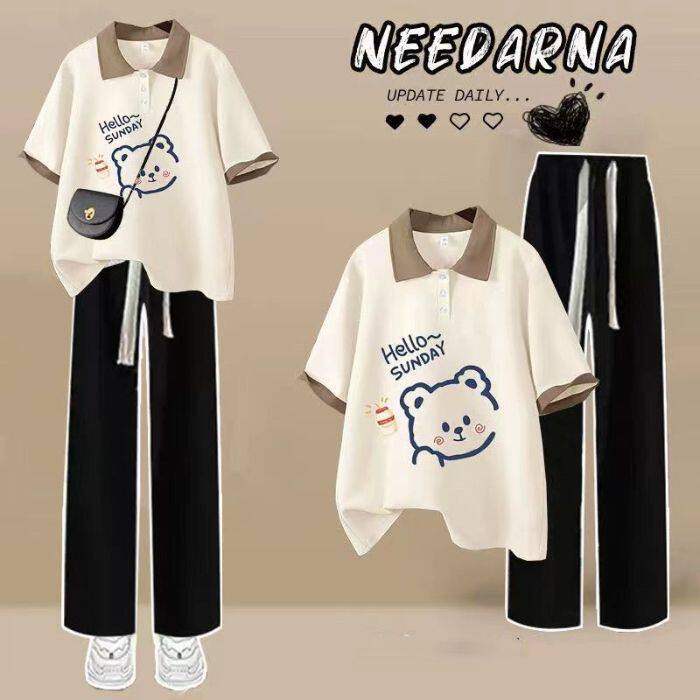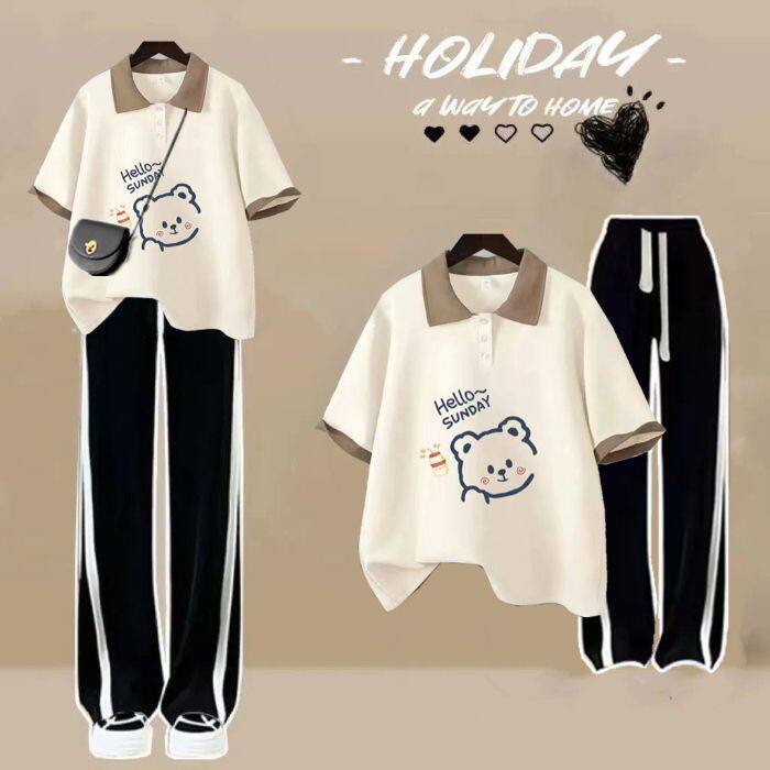 女童polo领小清新套装夏季2026新款韩版学生休闲短袖T恤宽松夏装