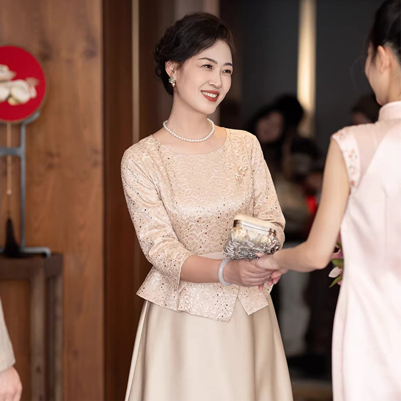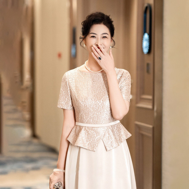 妈妈婚宴礼服高贵婆婆结婚敬酒2026春夏新款婚礼气质遮肚子连衣裙