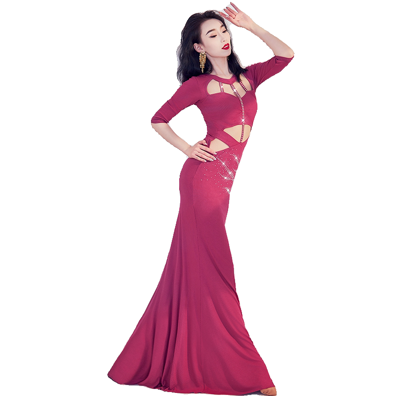 迷迭舞肚皮舞服装2026春夏新款闪亮连衣裙遮肚子舞蹈服装表演服女
