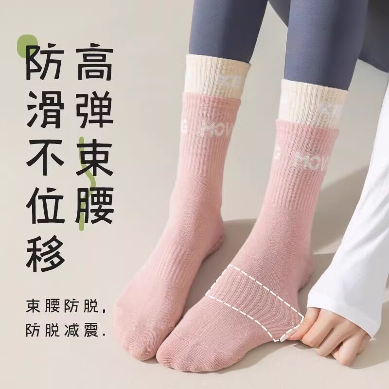 夏季室内健身配鲨鱼裤棉长筒袜夏瑜伽袜子女防滑中筒普拉提运动袜
