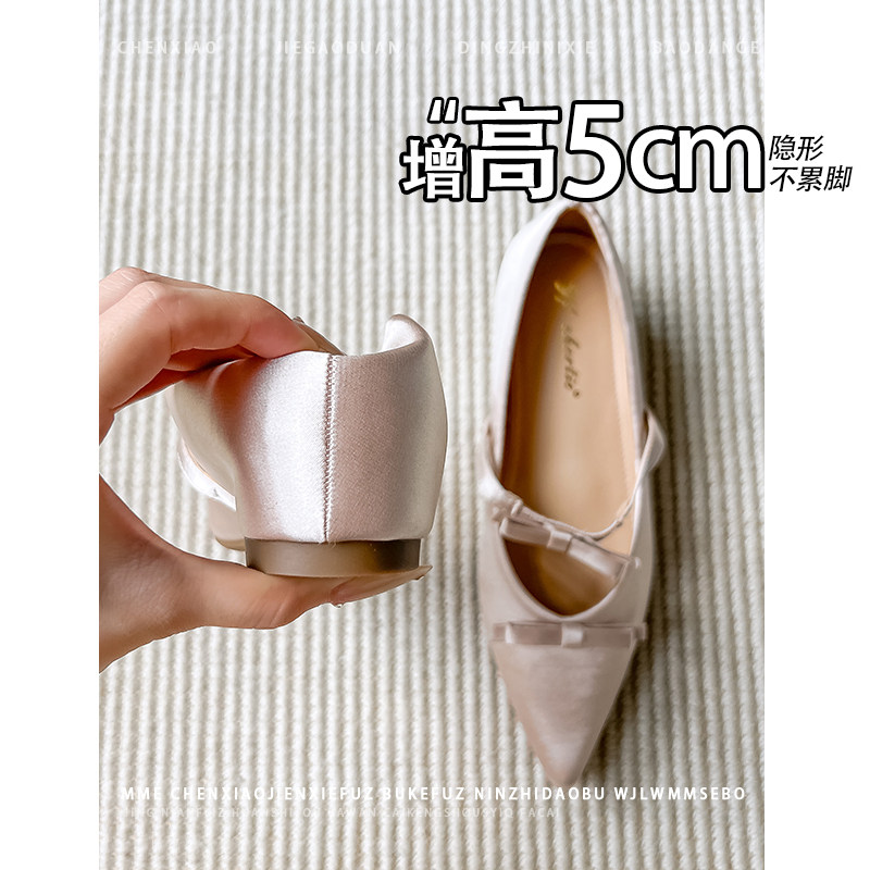 不累脚!小个子内增高5CM玛丽珍鞋2026秋新款尖头浅口蝴蝶结单鞋