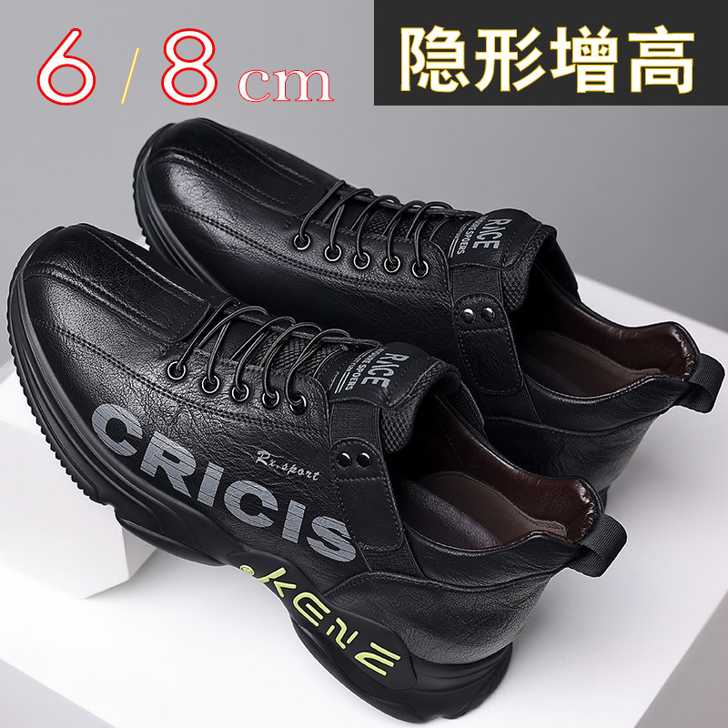 休闲鞋男百搭增高皮鞋男真皮隐形内增高6cm时尚8cm透气男鞋子加绒