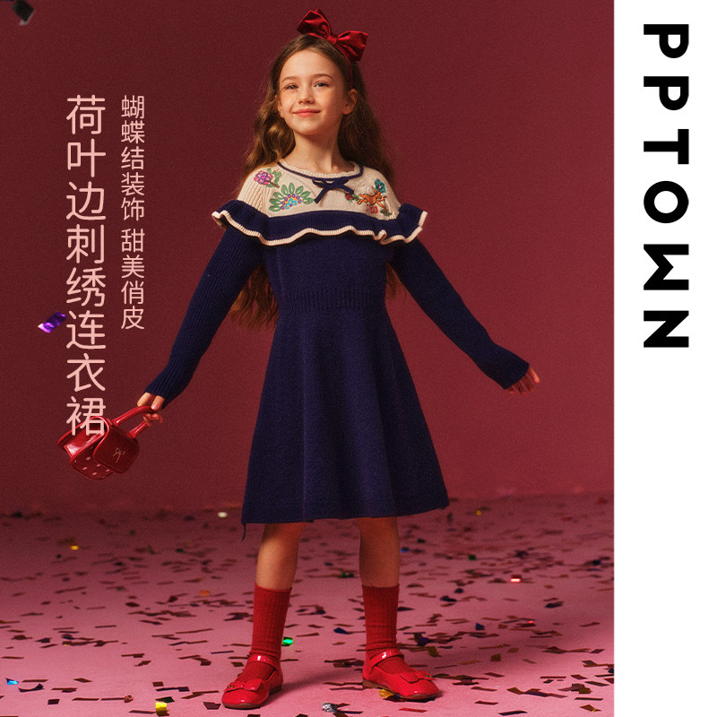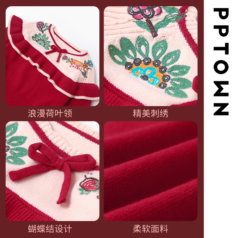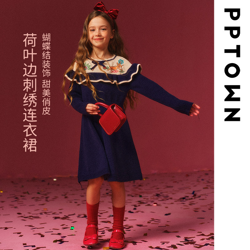 女童连衣裙冬季长袖红色毛衣裙拜年服裙子儿童2026新年衣服童装