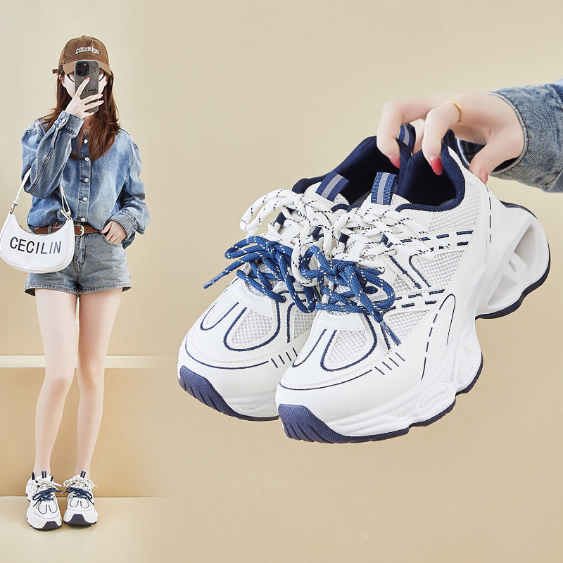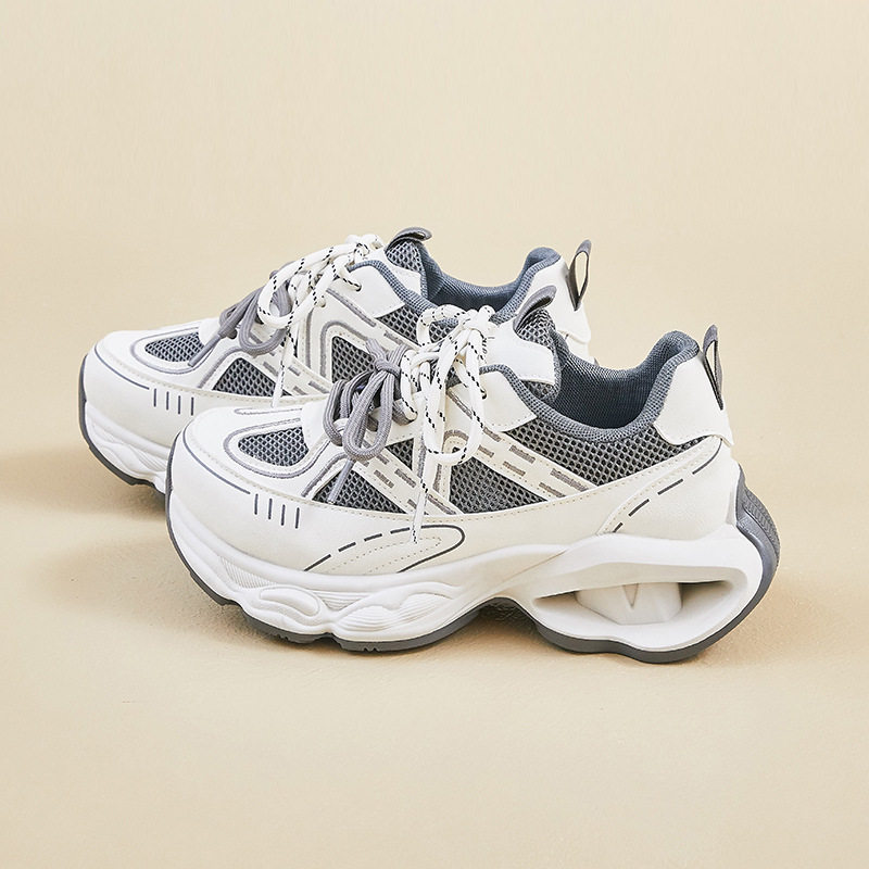 春季网面透气轻便老爹鞋女2026新款今年流行爆款灰色厚底配阔腿裤
