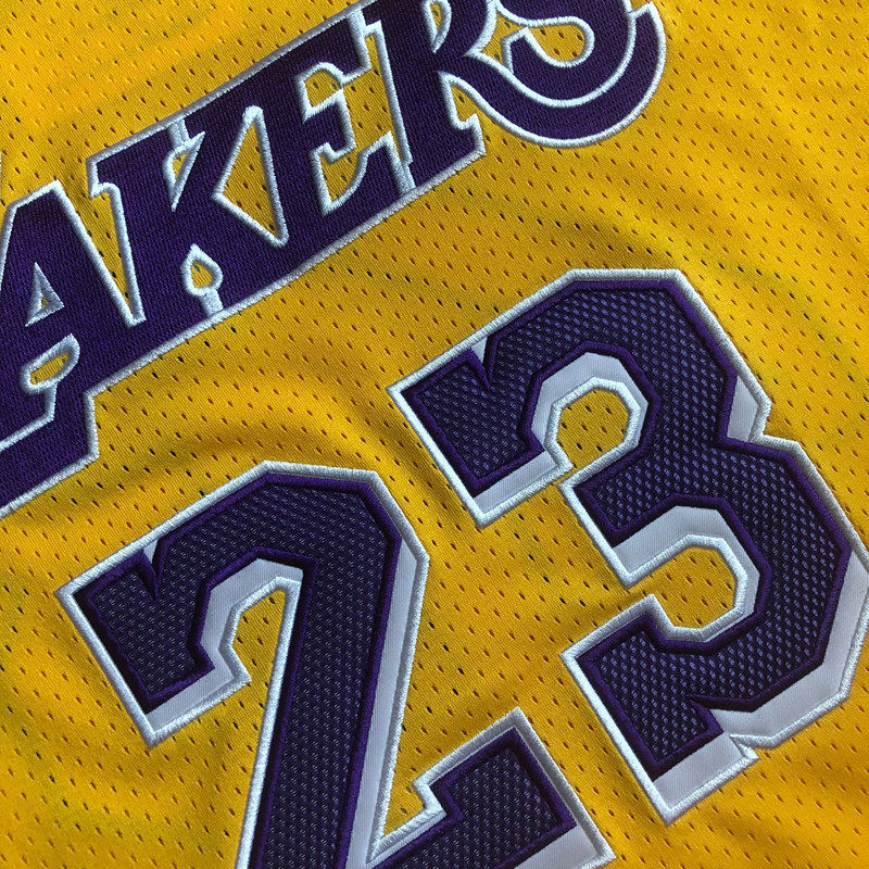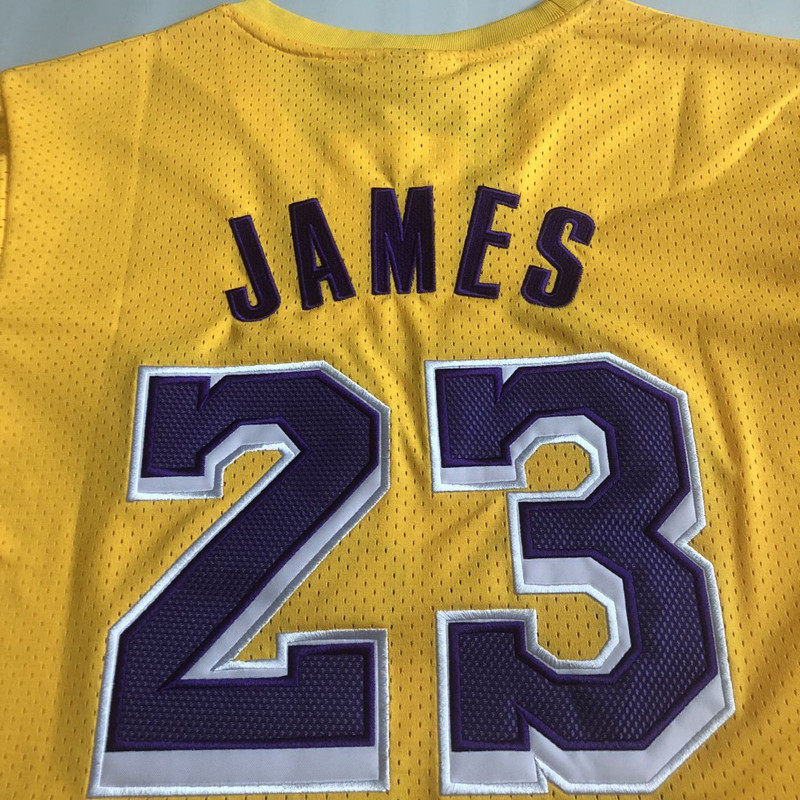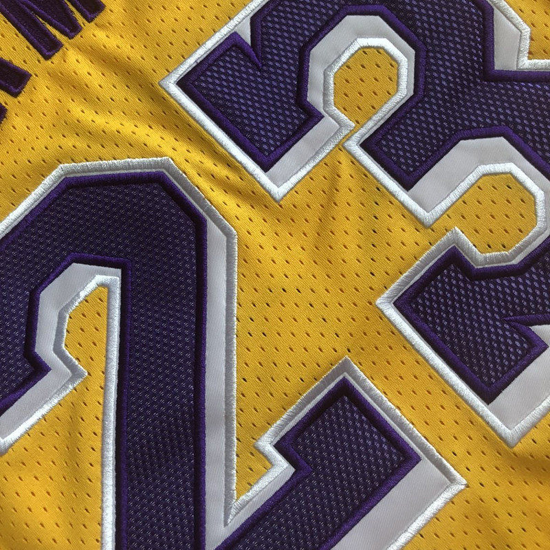 全刺绣 湖人队23号詹姆斯球衣复古黄色短袖8科比篮球服77东契奇潮