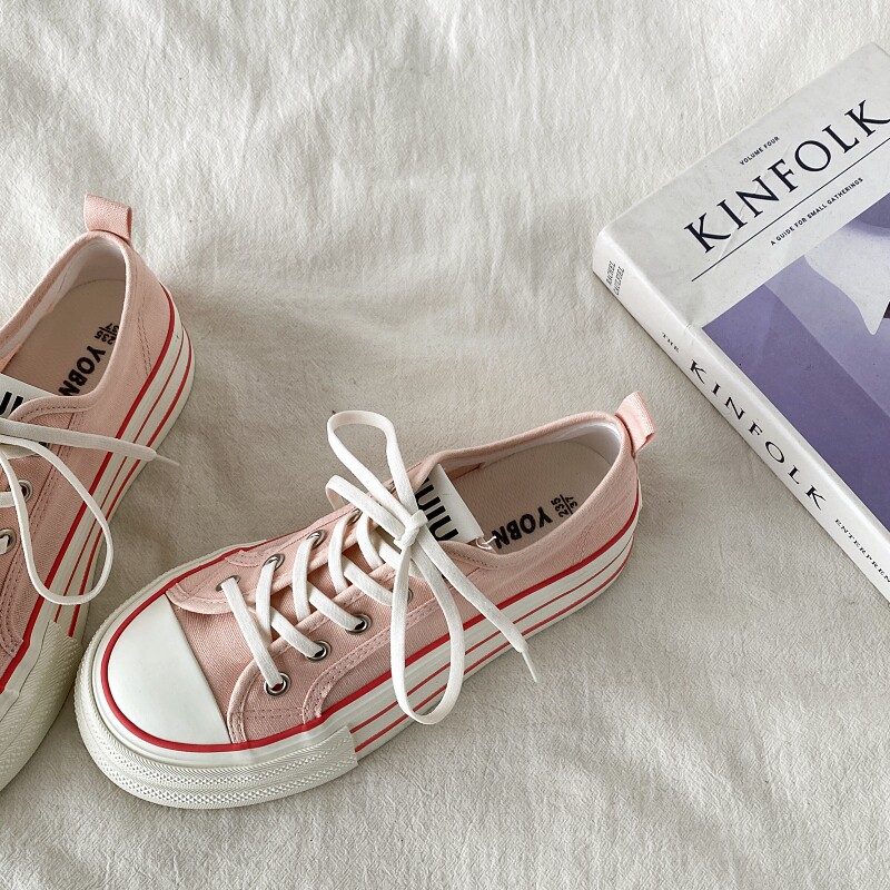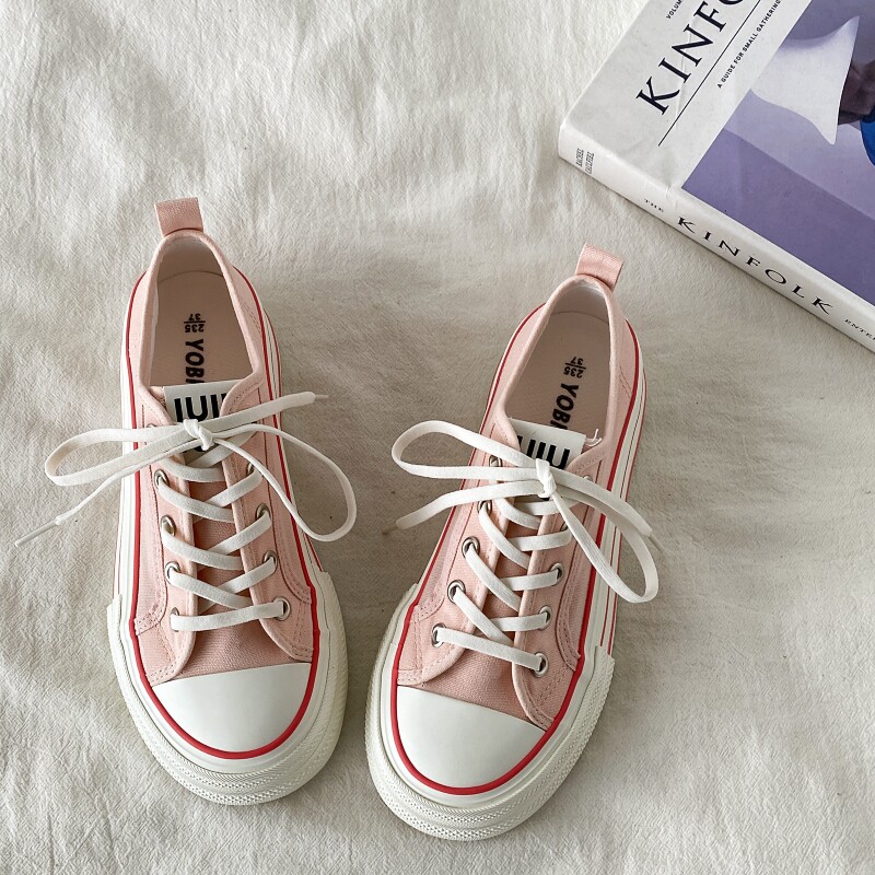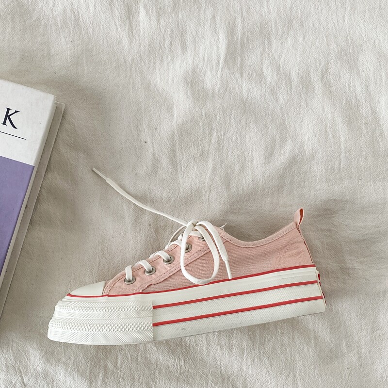 喜叔厚底粉色帆布鞋女款2025新款夏季超火薄款透气板鞋休闲小白鞋