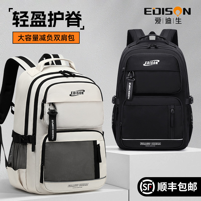 爱迪生初中生书包女生新款中学生男生超轻大容量高中生减负护脊男