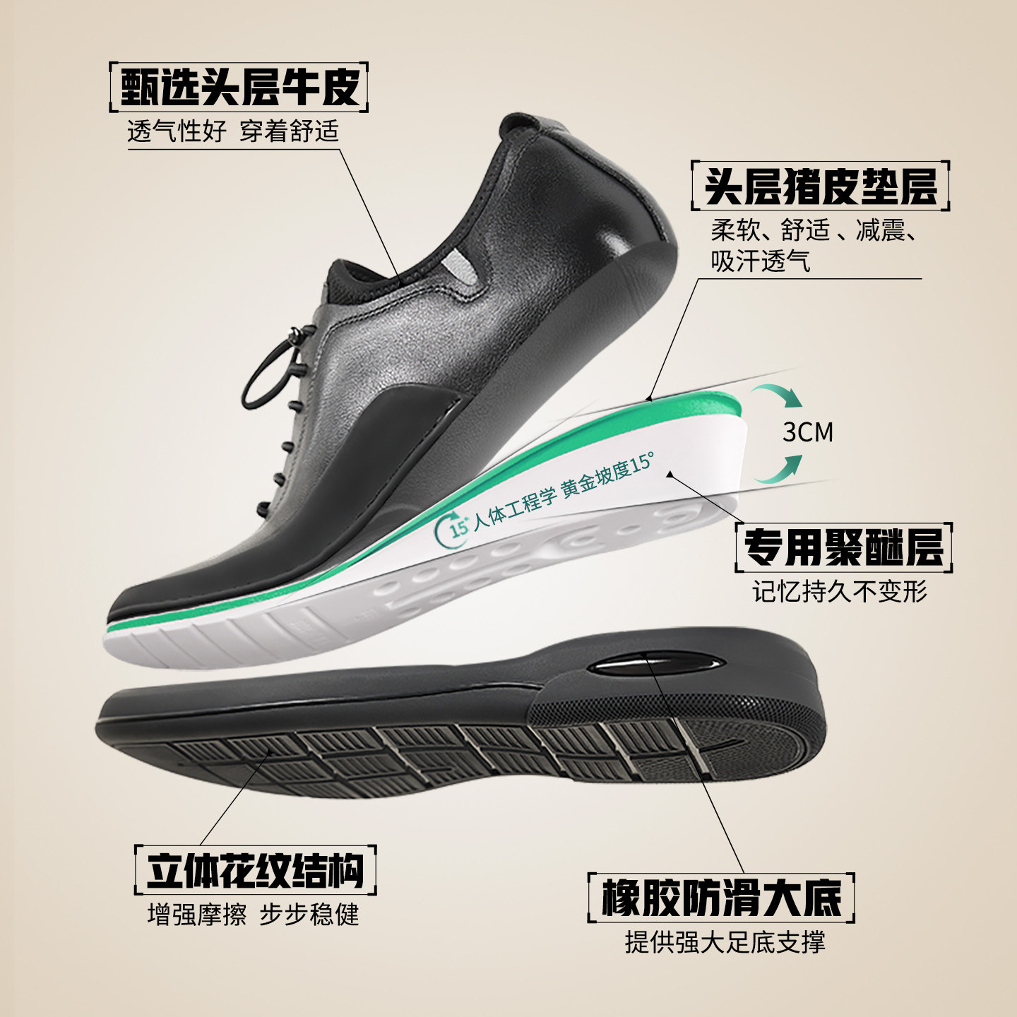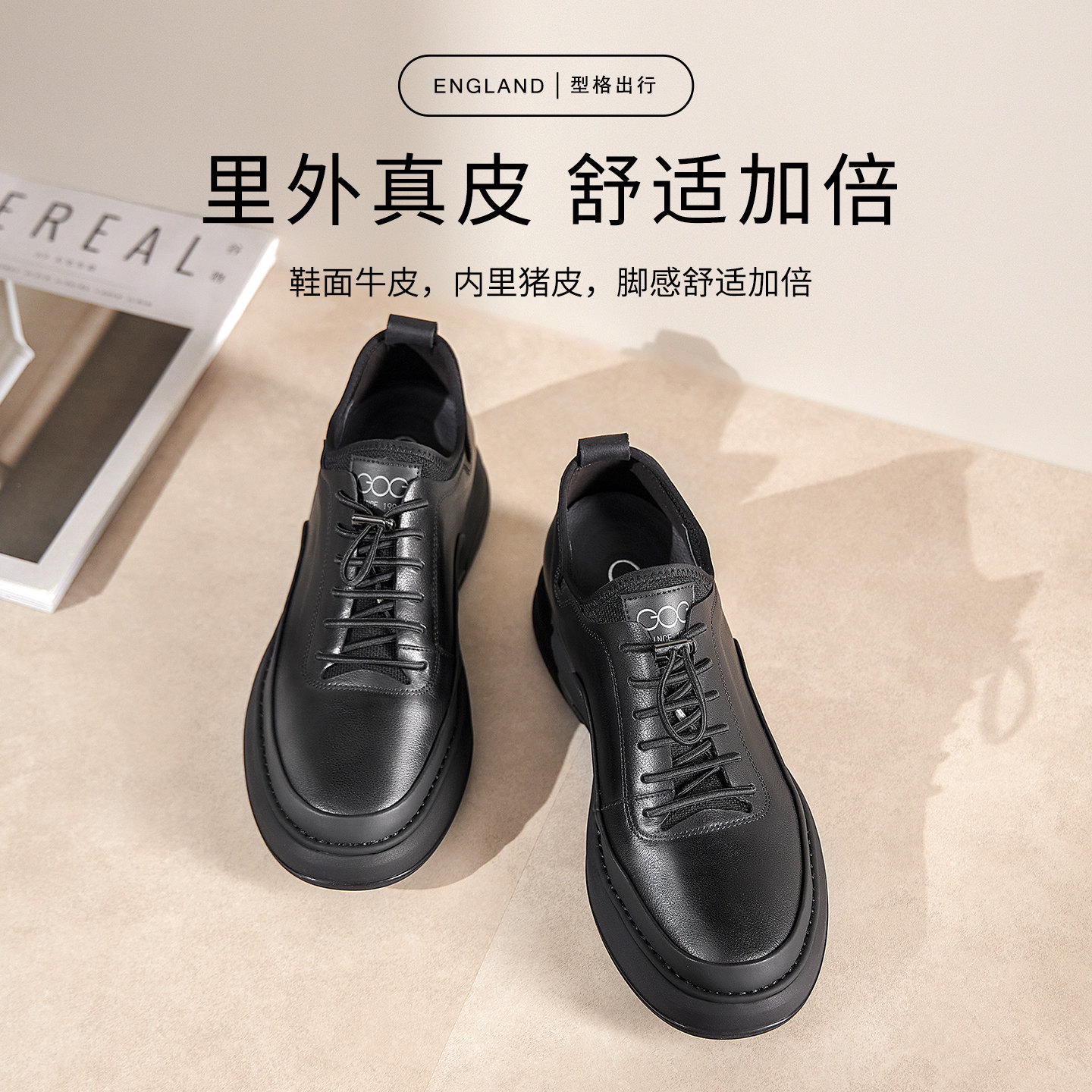311线报网描述:高哥增高鞋6cm系带皮鞋