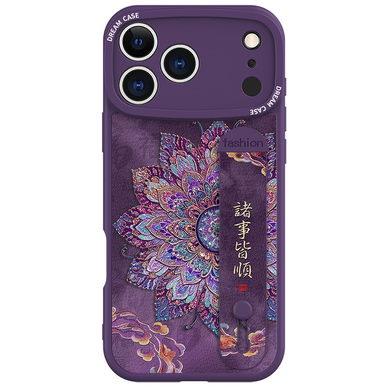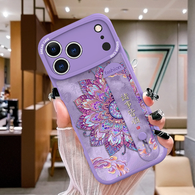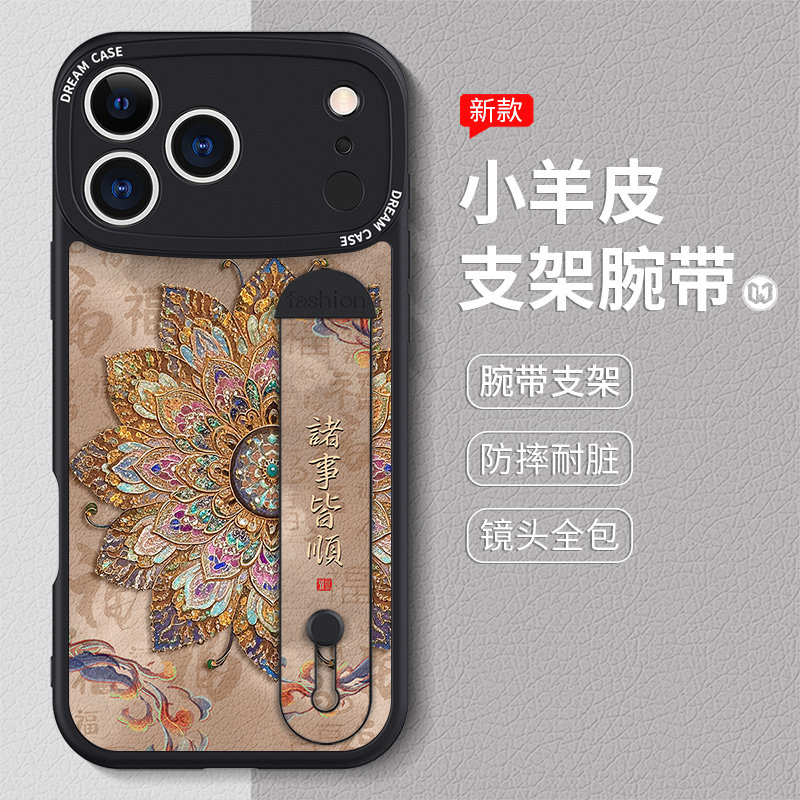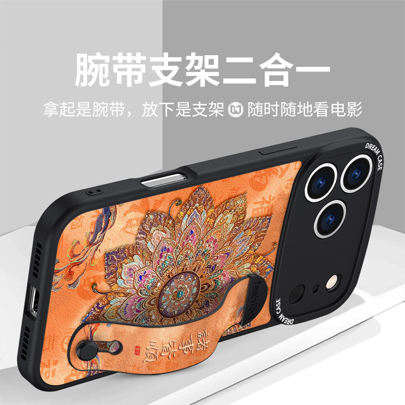 小羊皮支架适用苹果17promax手机壳新款17腕带iPhone16promax防摔15敦煌风14plus图腾花朵13硅胶12软壳17pro