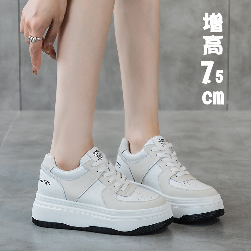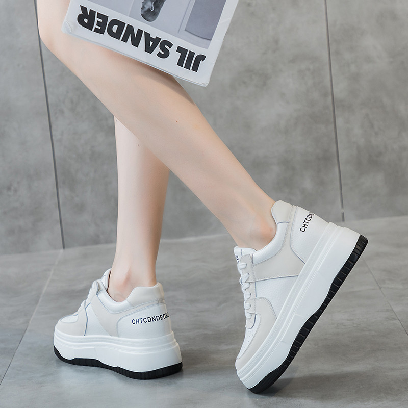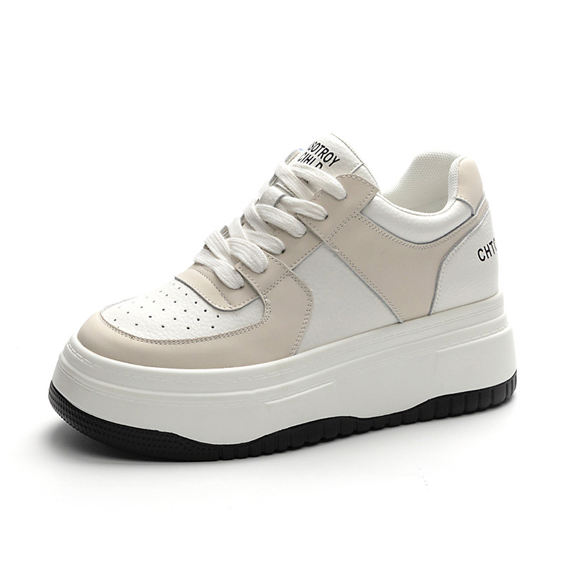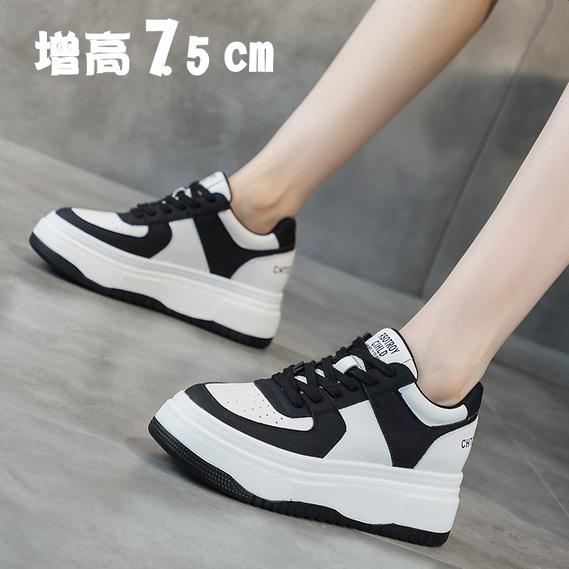 小个子真皮内增高小白鞋女松糕厚底系带黑白拼色板鞋小码32 33 34