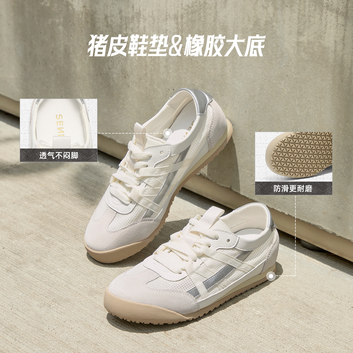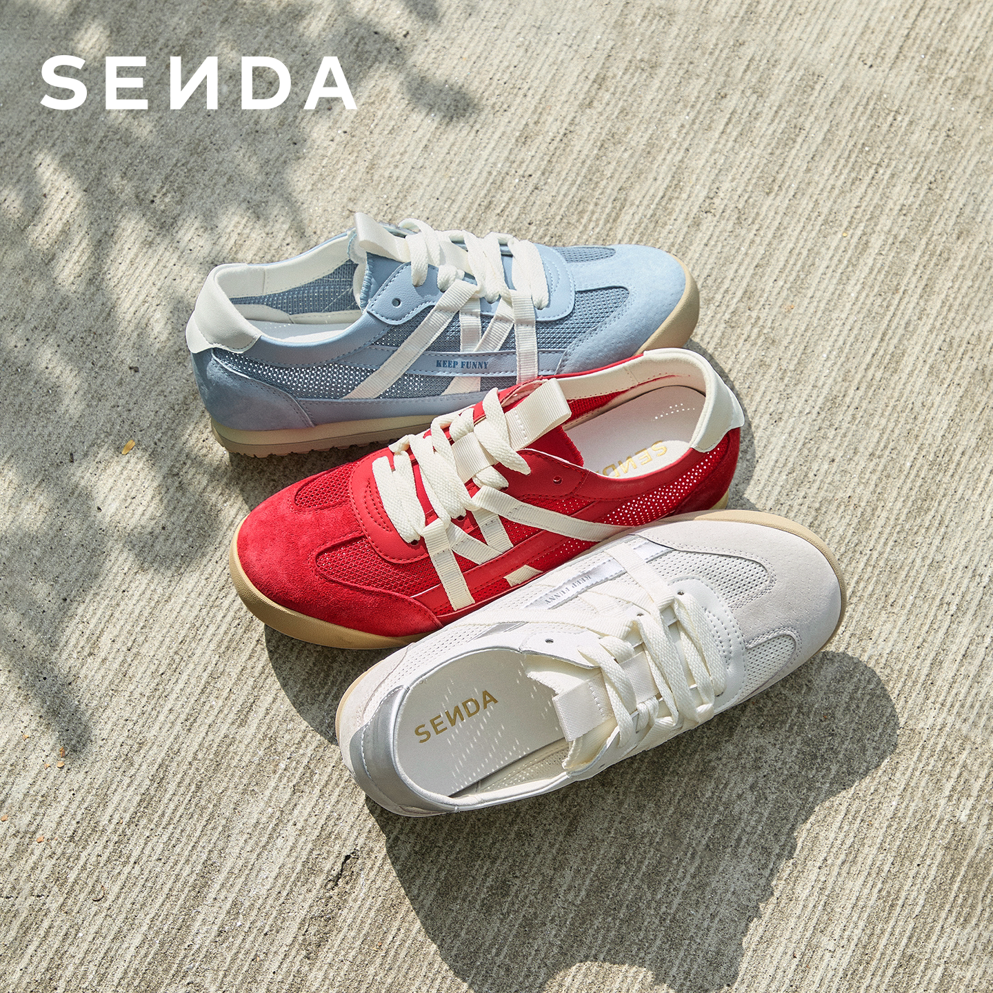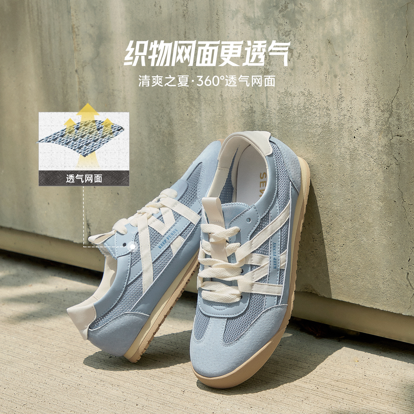 森达蓝色德训鞋女新款透气网面薄款休闲鞋百搭板鞋运动小白鞋超轻
