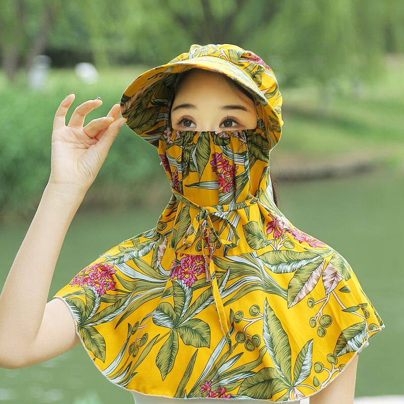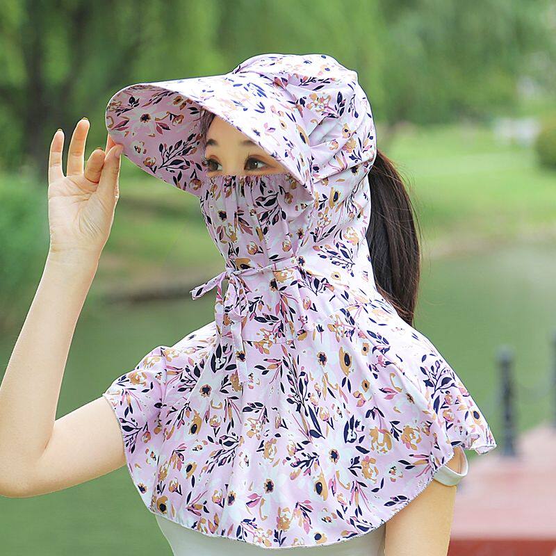 防晒帽子女夏天大沿遮脸护颈披肩帽户外骑行太阳帽干活防尘遮阳帽