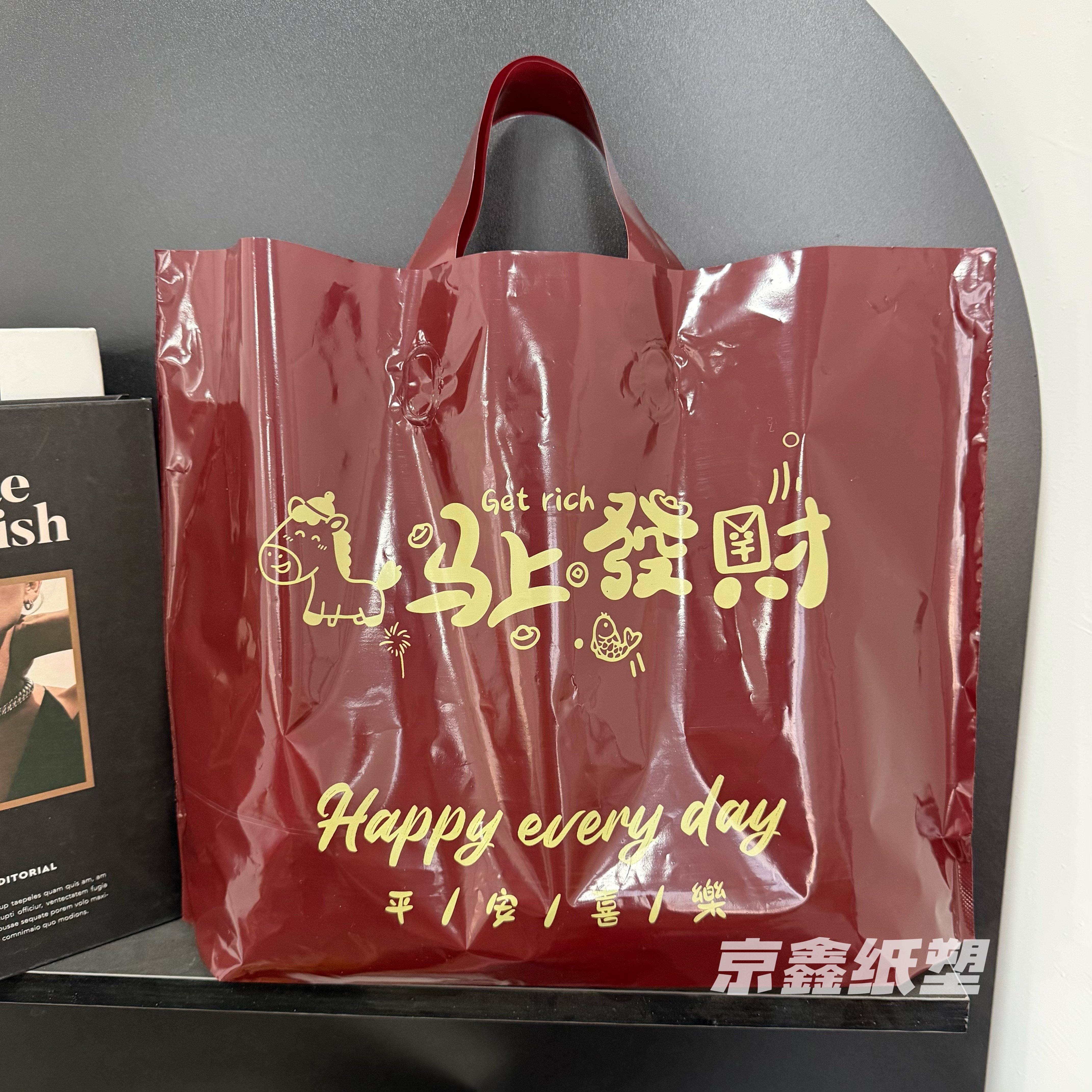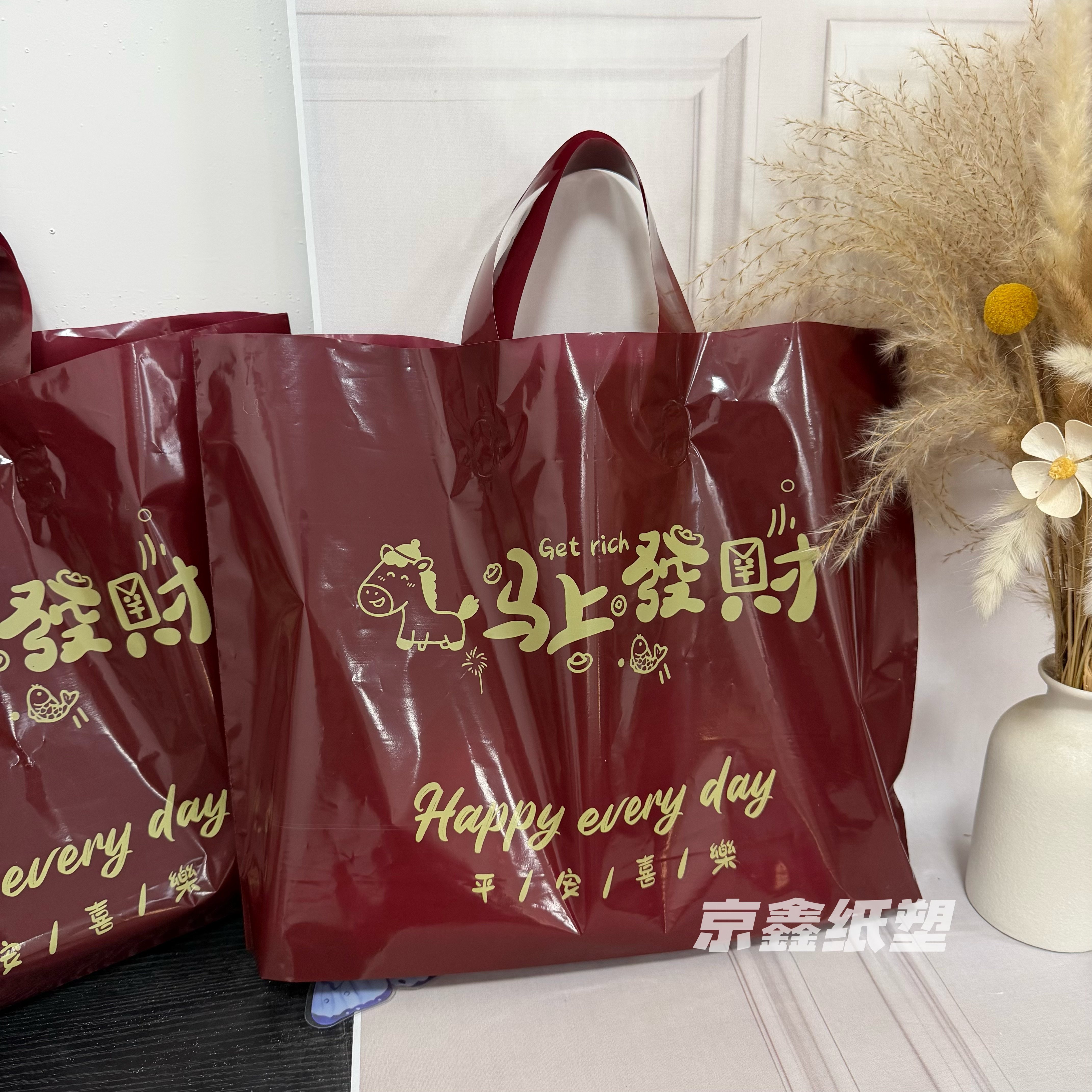 年款马上发财红色喜庆加厚塑料袋手提袋服装店礼品袋子定制logo