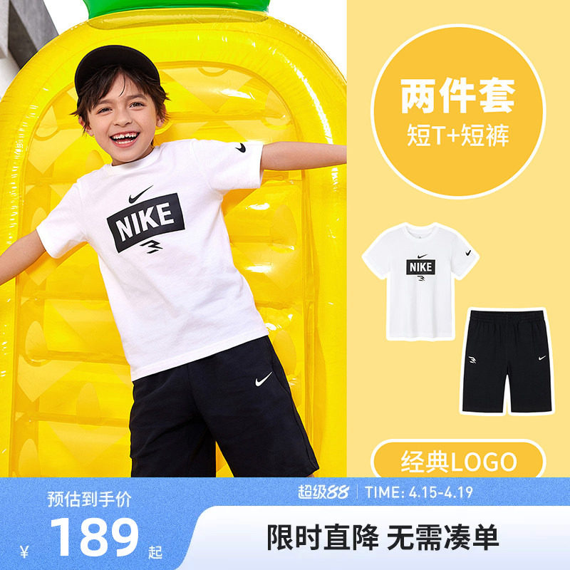Nike 3brand儿童套装男童短袖T恤短裤五分裤子两件套夏季透气夏装