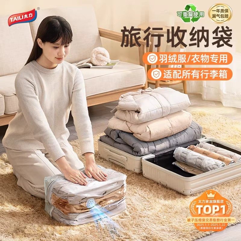 太力羽绒服收纳袋真空压缩袋行李箱专用免抽气衣服衣物旅行手卷袋