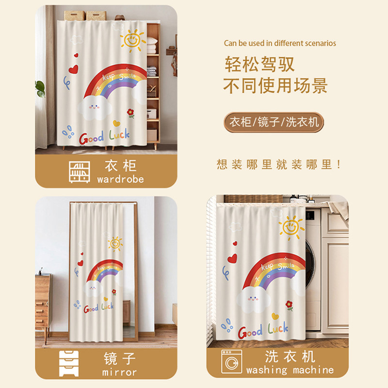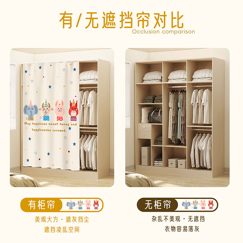 柜子遮挡帘滑轨拉帘遮尘免打孔鞋架防尘布帘书柜杂物柜帘衣柜门帘