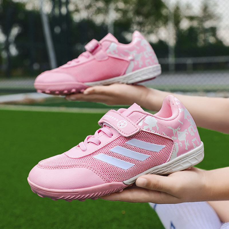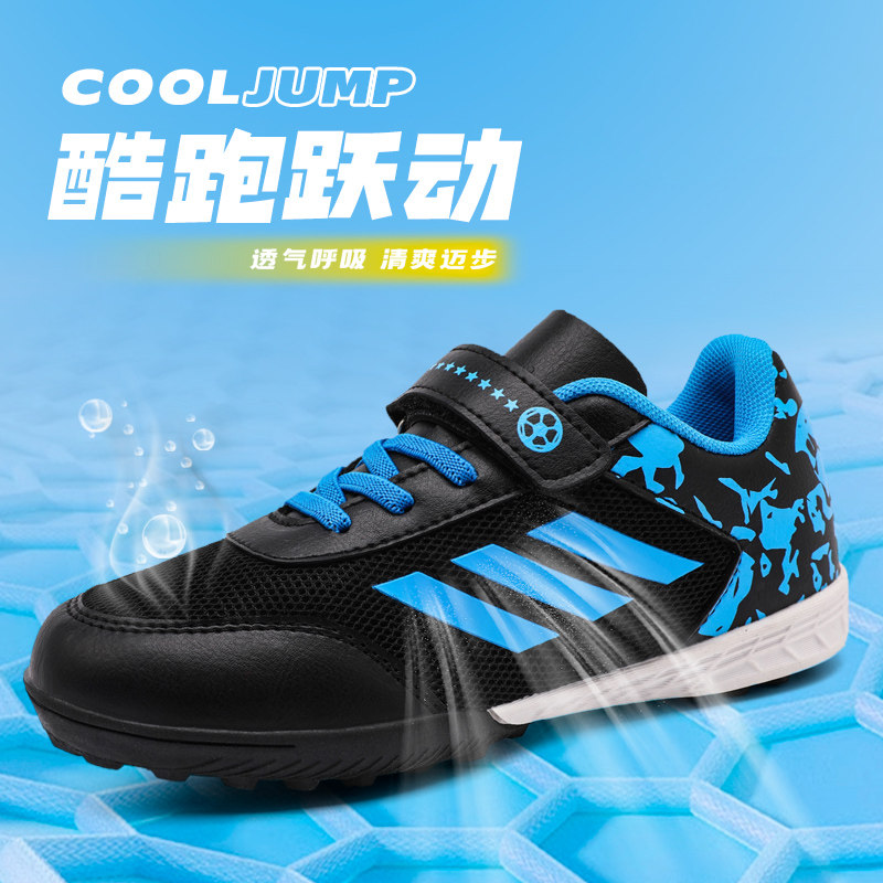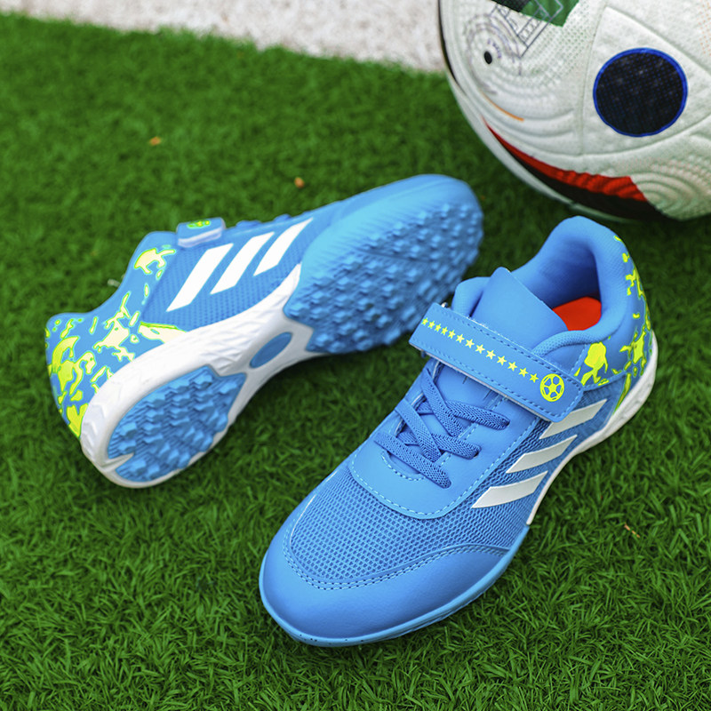 亚马尔夏季新品儿童足球鞋男童网面透气碎钉TF魔术贴小学生女训练