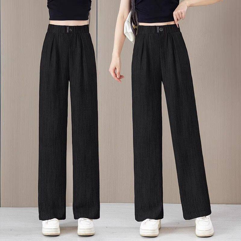 裤子女款夏季薄款松紧腰宽松新款加大码慵懒风裤子女休闲运动裤