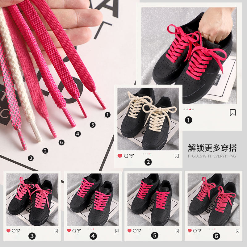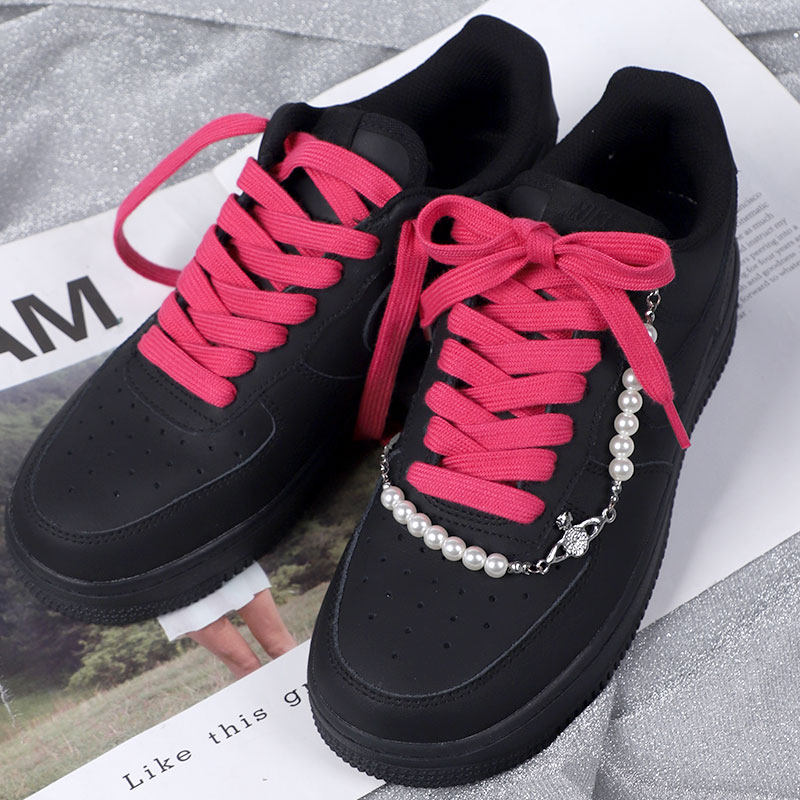 黑武士鞋带玫红色男款空军一号af1倒钩板鞋麻绳反光扁平加粗圆绳