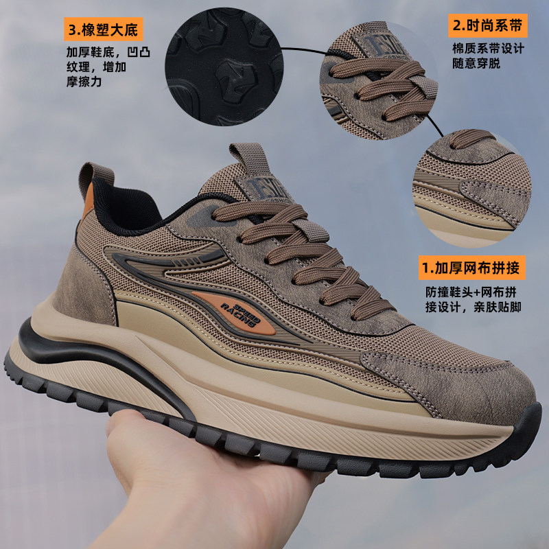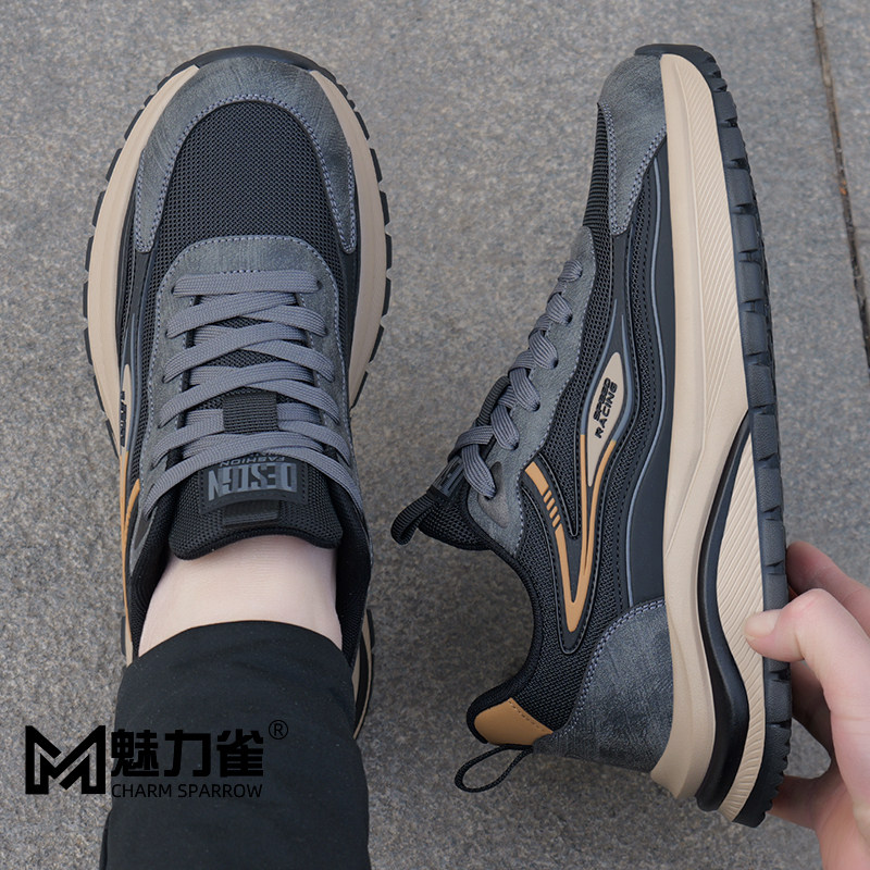 男鞋2026新款春季网面透气运动鞋软底防滑老爹鞋子男士休闲跑步鞋