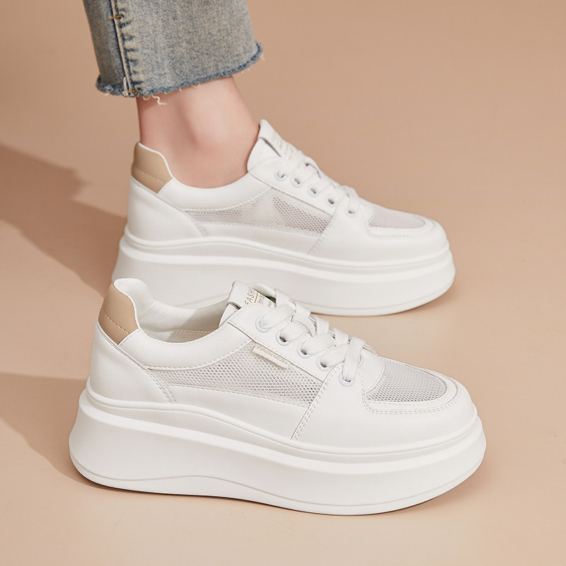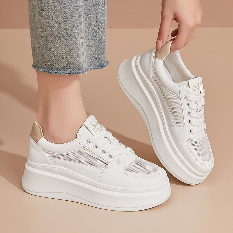 爆款女士夏季镂空小白鞋新款单网厚底休闲鞋轻便软底透气运动板鞋
