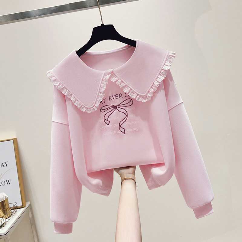 初中女生甜美春装大娃娃领卫衣宽松时尚高中学生可爱休闲长袖上衣