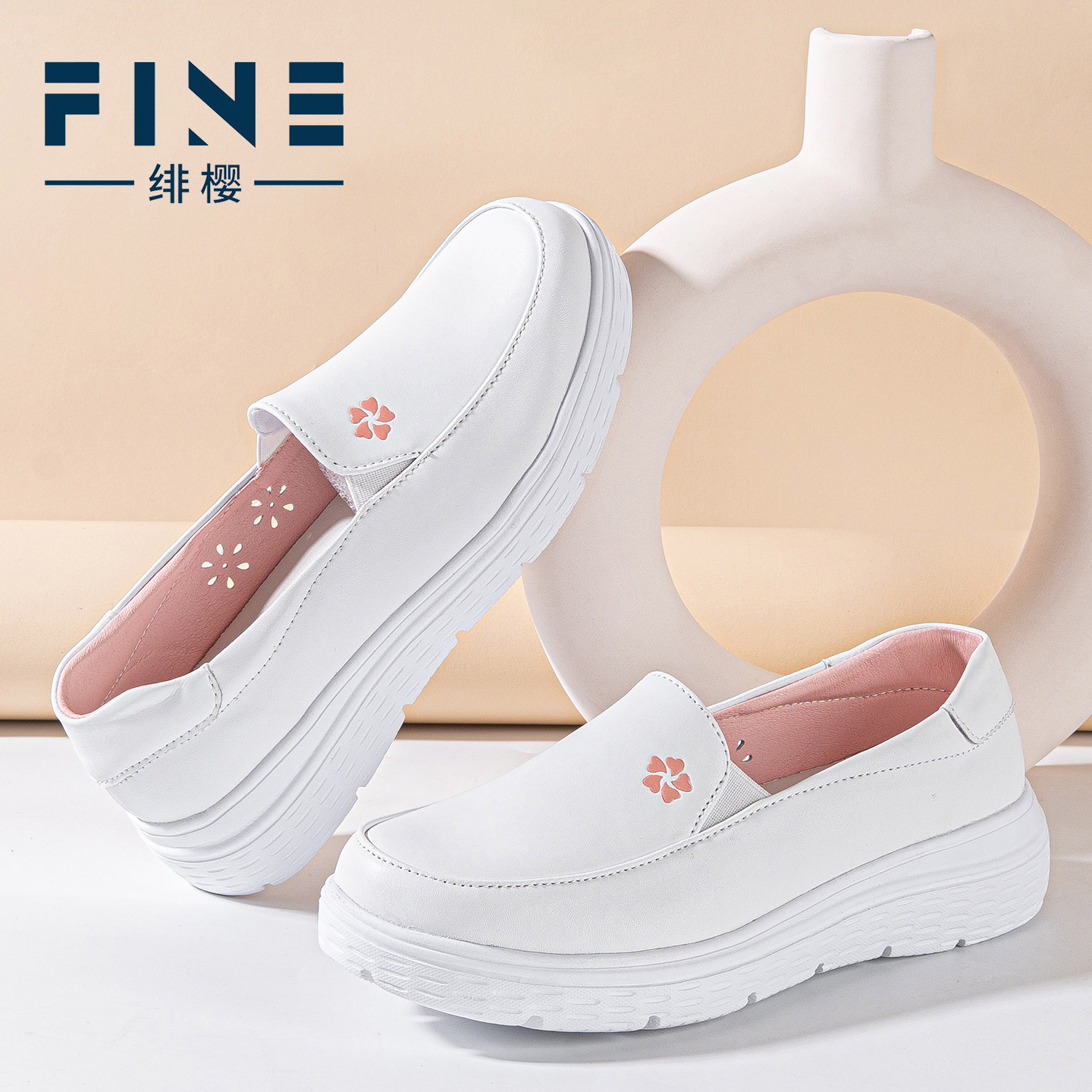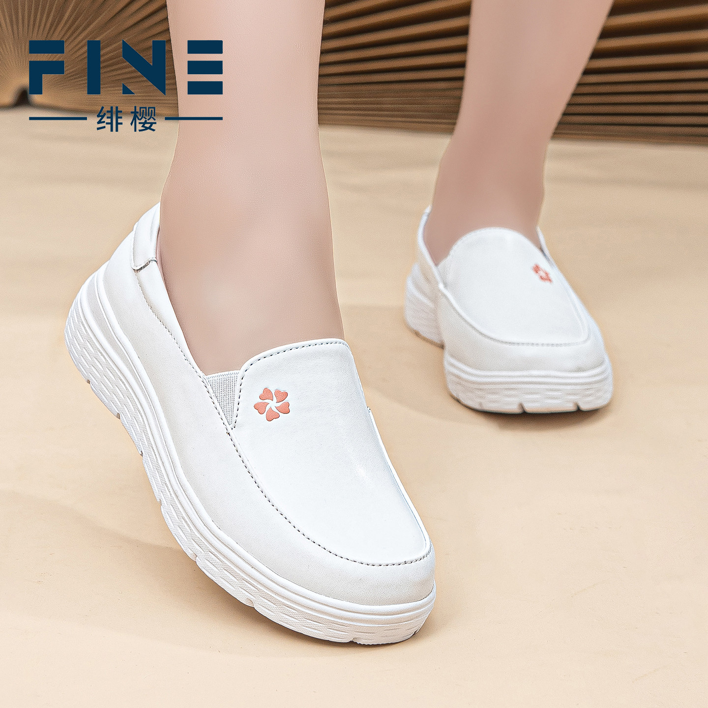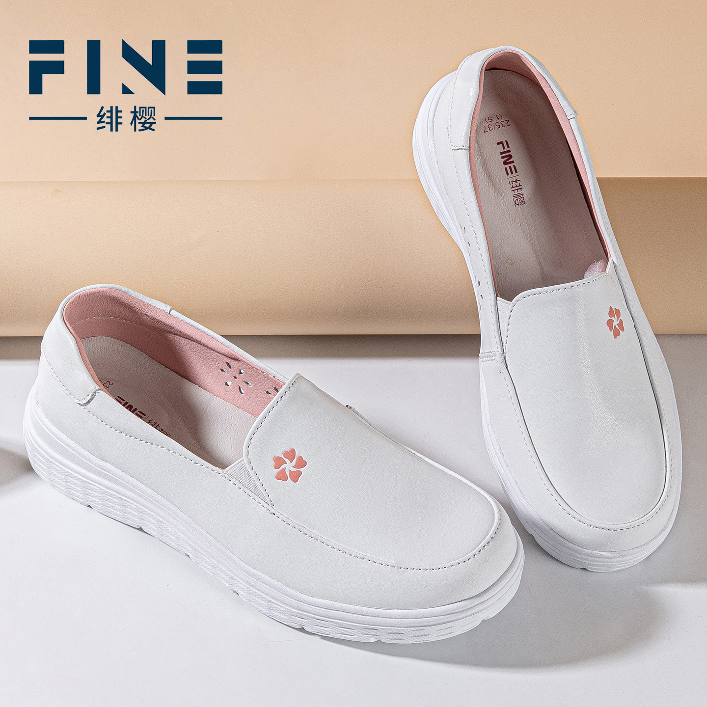 绯樱真皮护士鞋女款防滑软底透气不累脚增高医护鞋工作鞋小白鞋