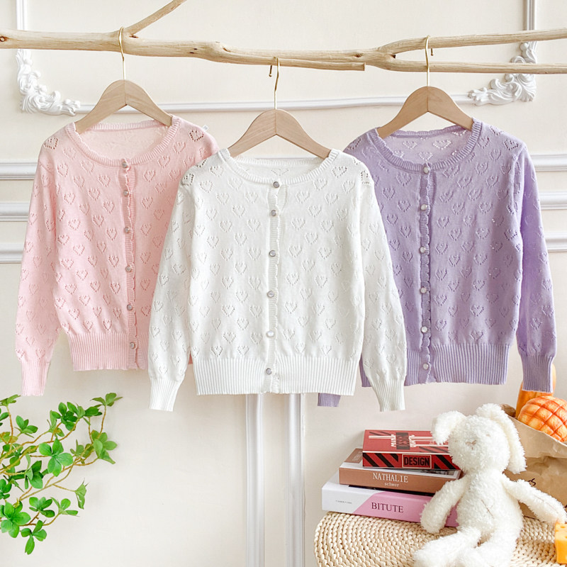 女童针织开衫春季薄款2026新款儿童外套上衣纯棉披肩外搭毛衣春秋