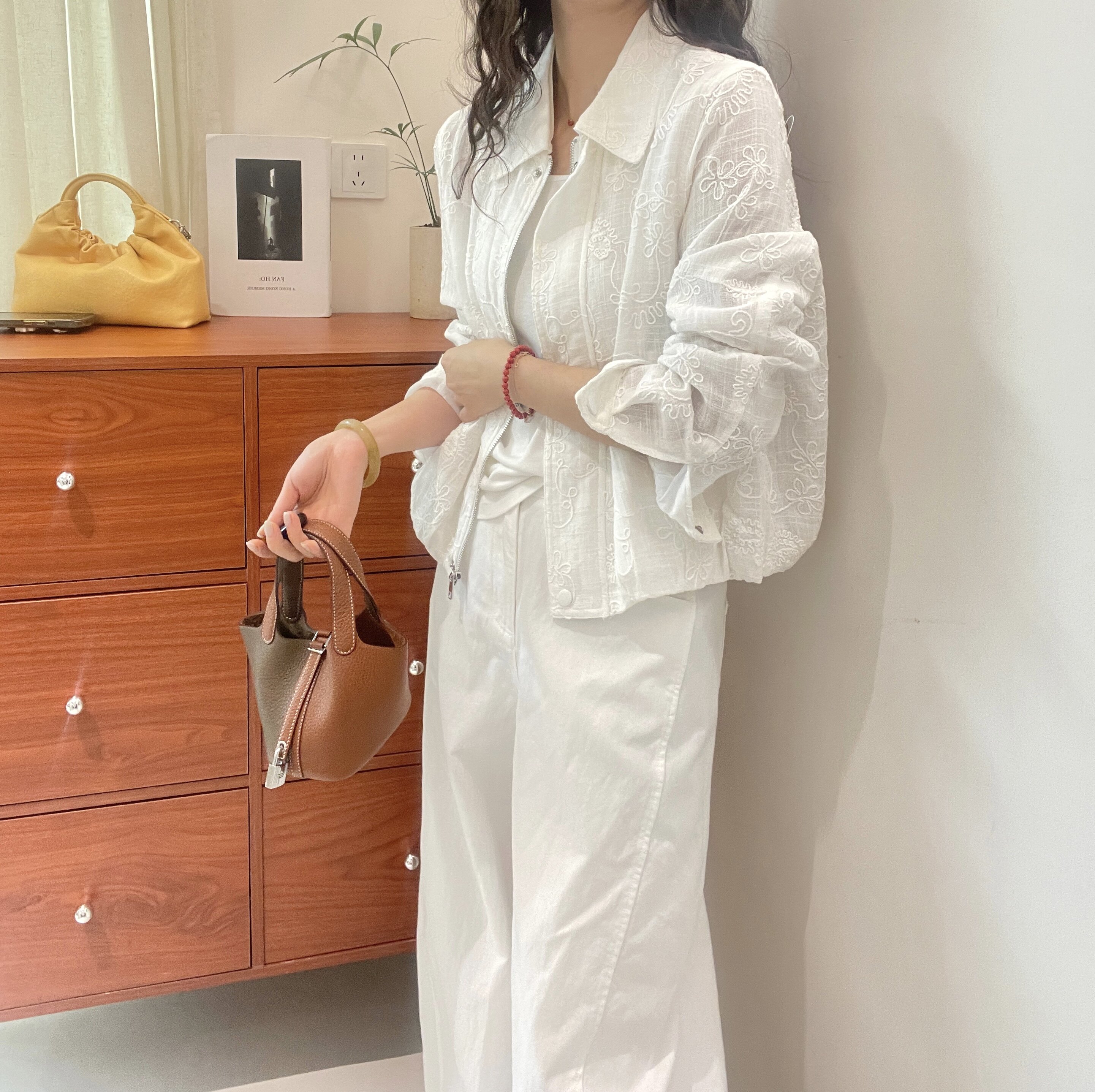 欧洲站2026春款白色polo翻领刺绣短外套女刺绣夹克重工小个子外套