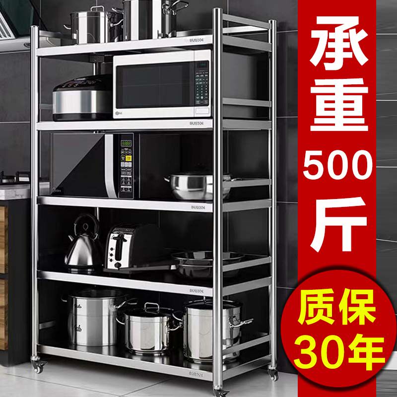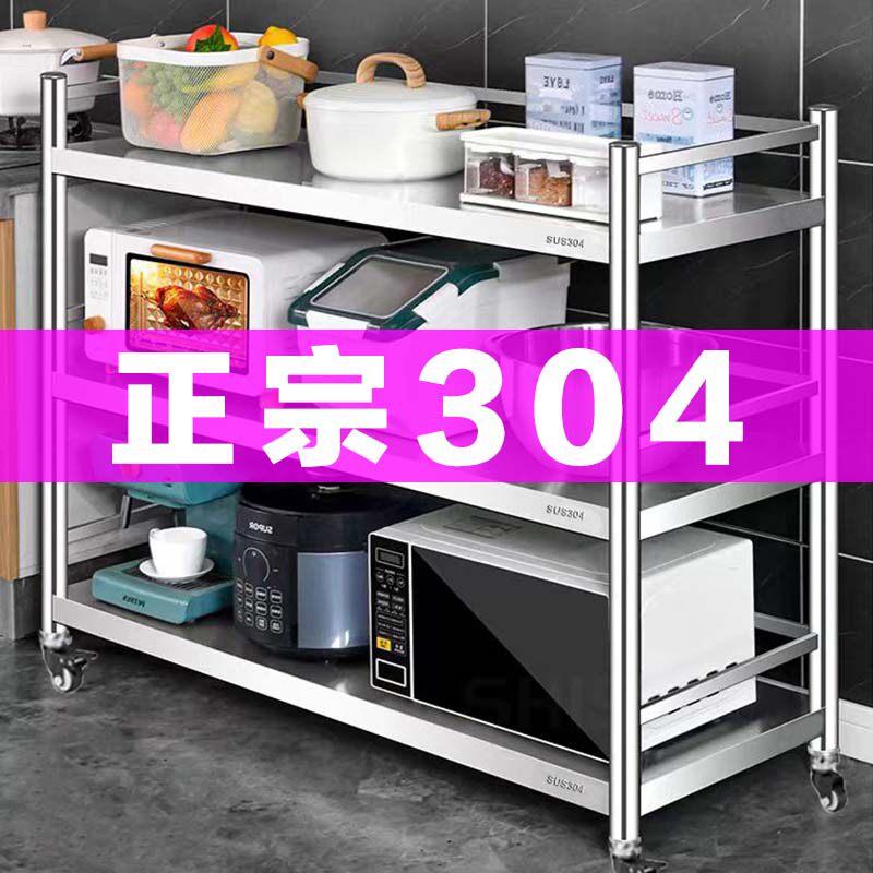 可移动304不锈钢架子厨房置物架多层家用收纳架落地储物架带轮子