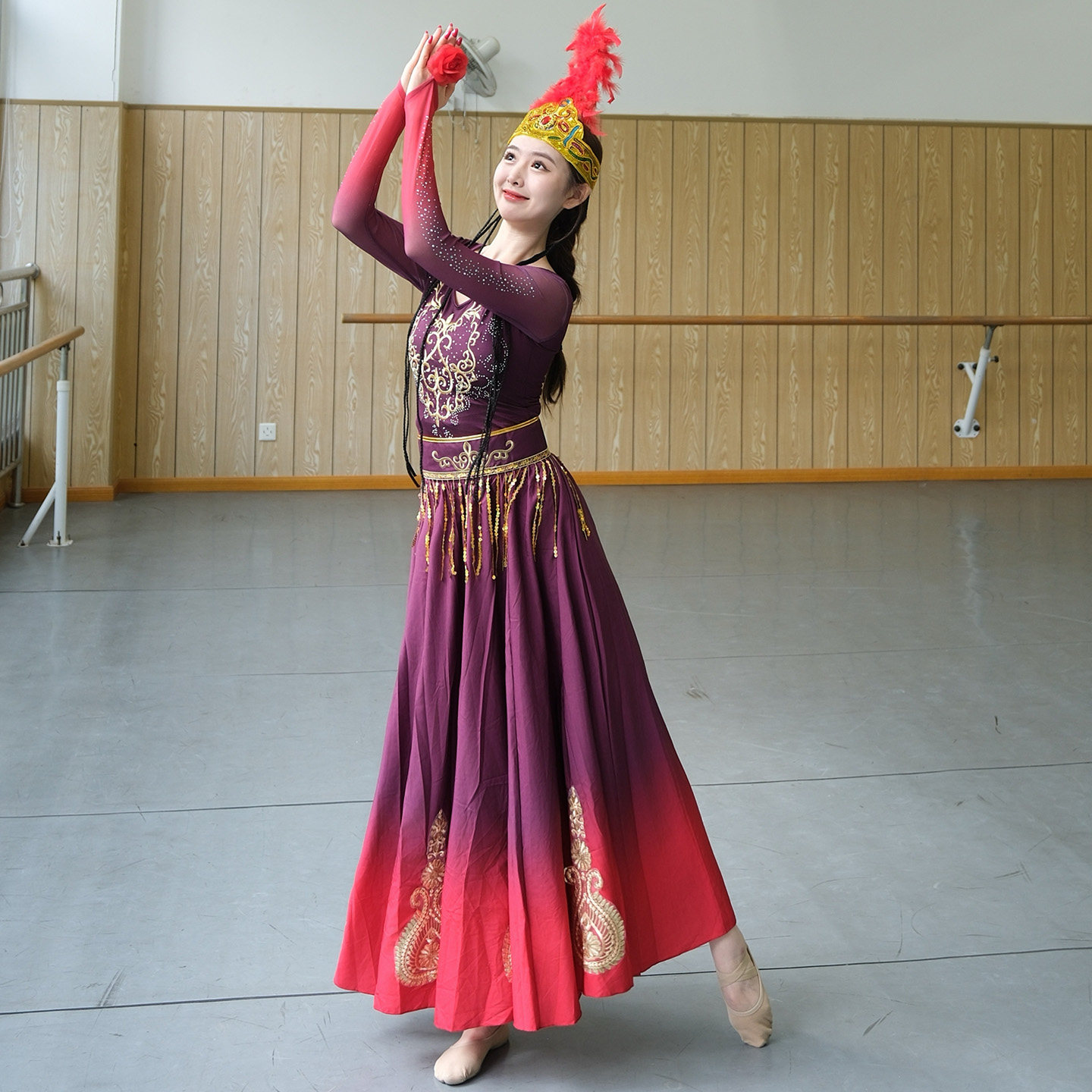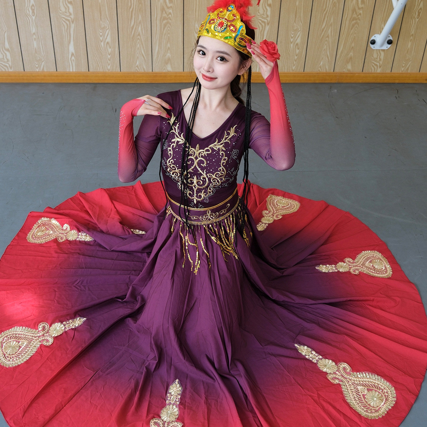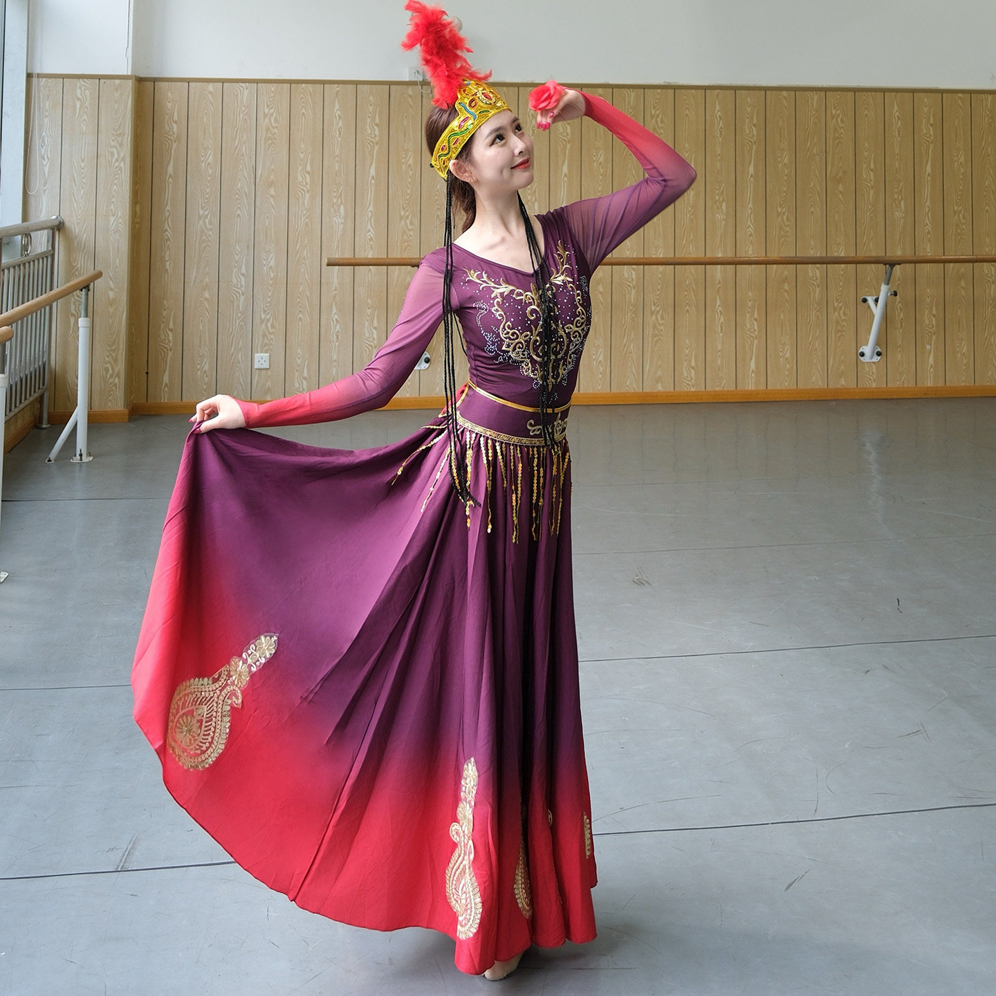 新疆舞蹈演出服装艺考成人维族练功大摆裙维吾尔族少数民族表演服