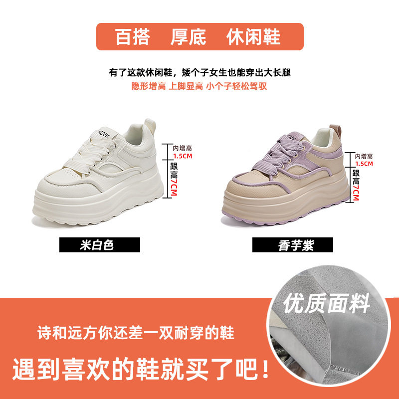香港小白鞋内增高女小个子配裙子透气厚底运动休闲鞋松糕百搭板鞋