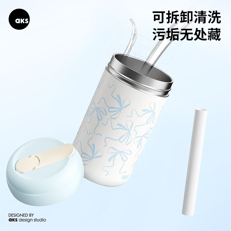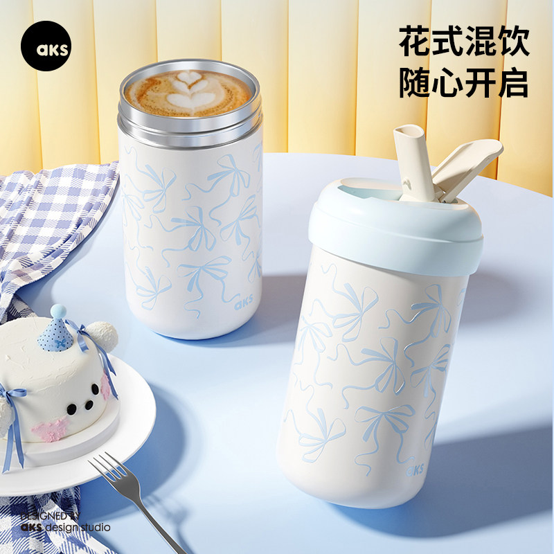 aks316不锈钢吸管保温杯女生高颜值水杯2025杯子小巧便携咖啡杯