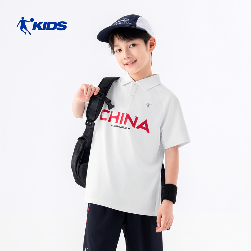 乔丹童装男童短袖polo衫2026夏季新款中大童潮酷短T国潮运动上衣