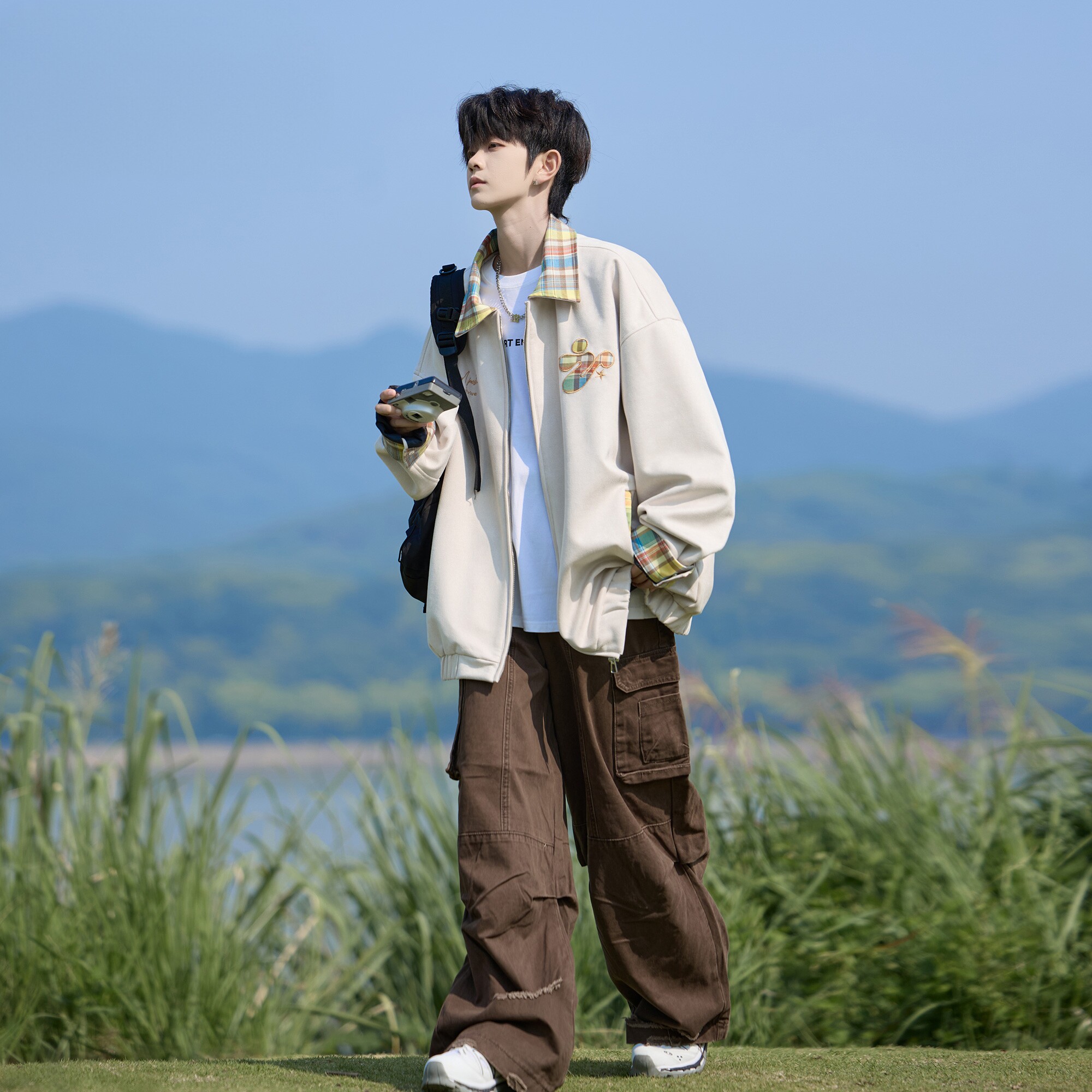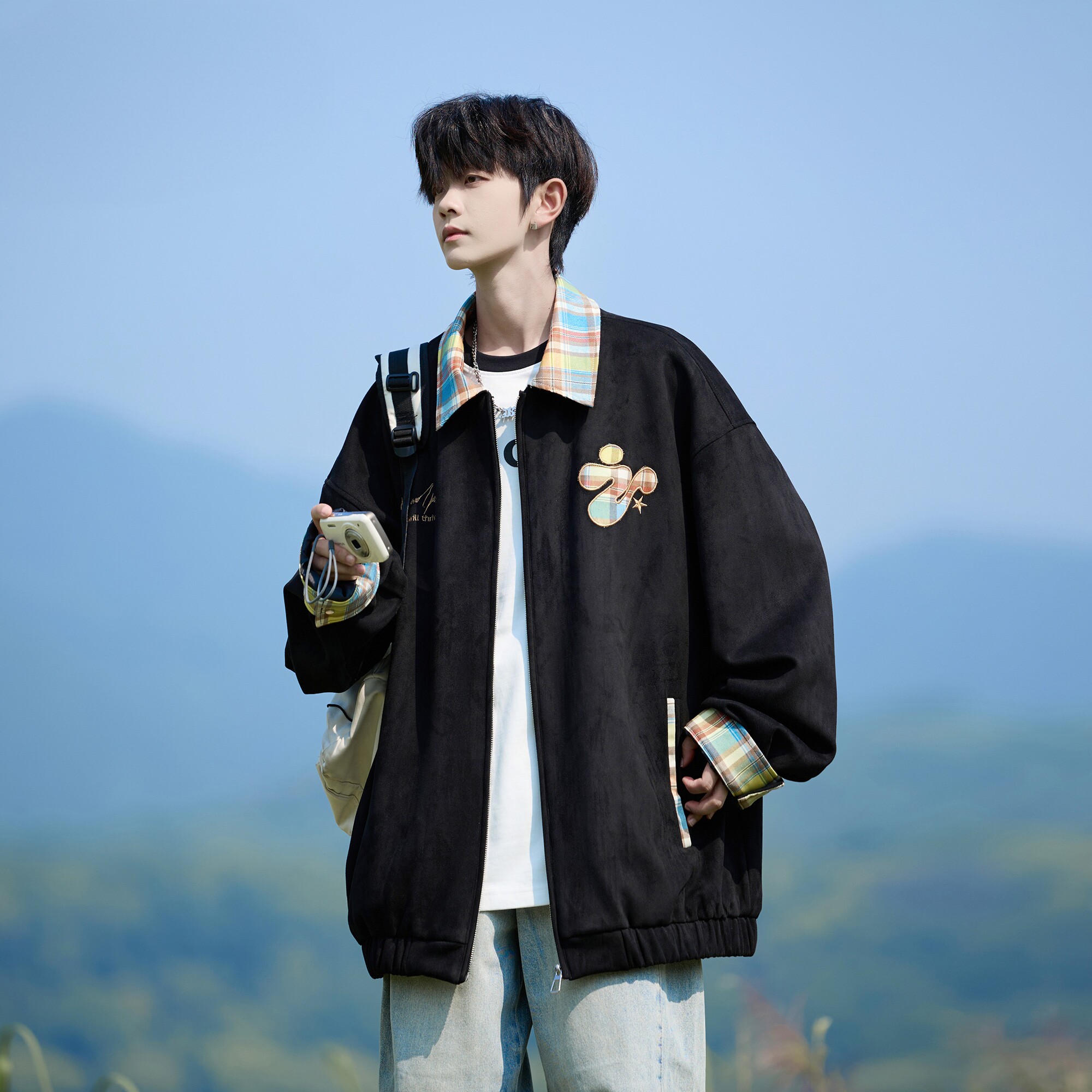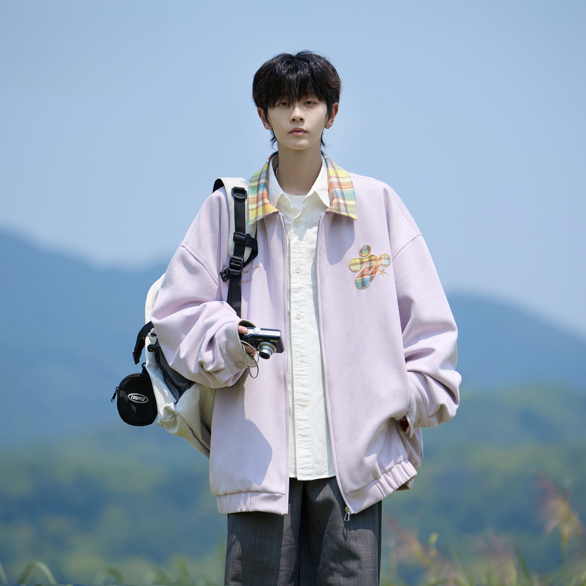 WASSUP BROWN美式多巴胺格纹外套男款2026春季新款宽松休闲夹克