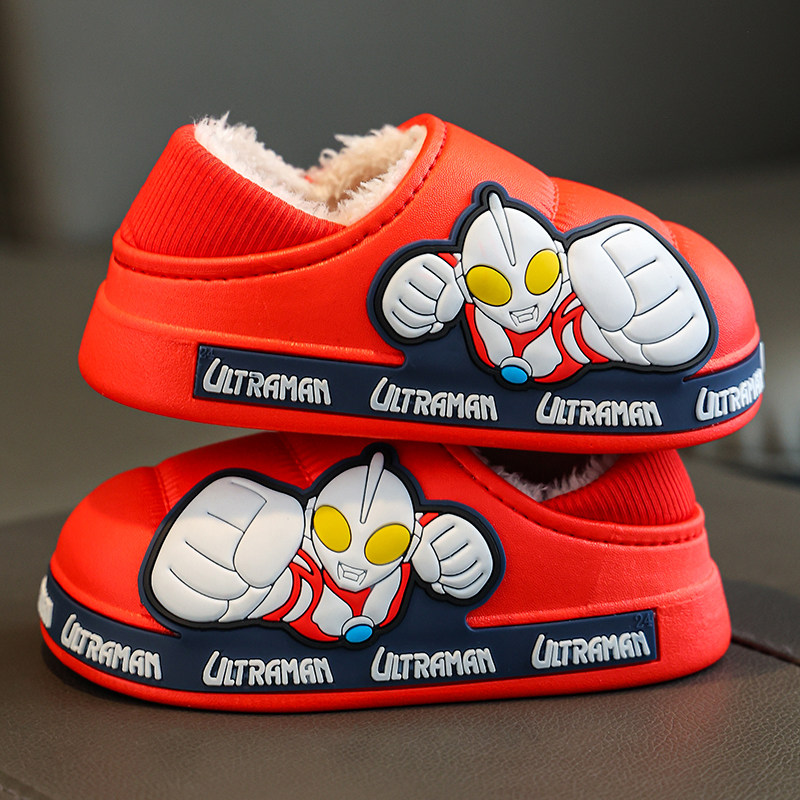 男童奥特曼棉拖鞋冬季卡通室内家居加绒包跟防滑宝宝儿童防水棉鞋