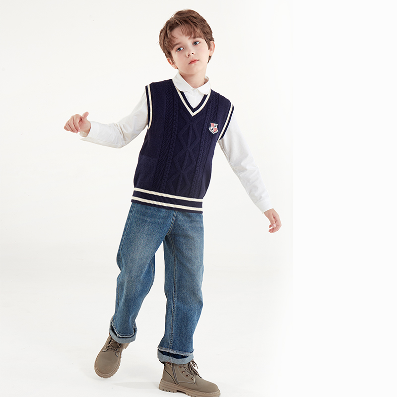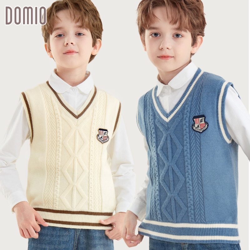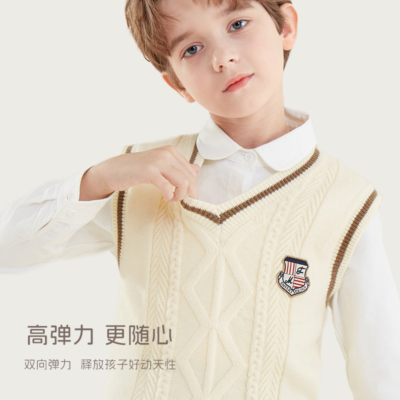 男童马甲春秋新款儿童针织坎肩中大童背心学院风男孩毛衣马夹冬装